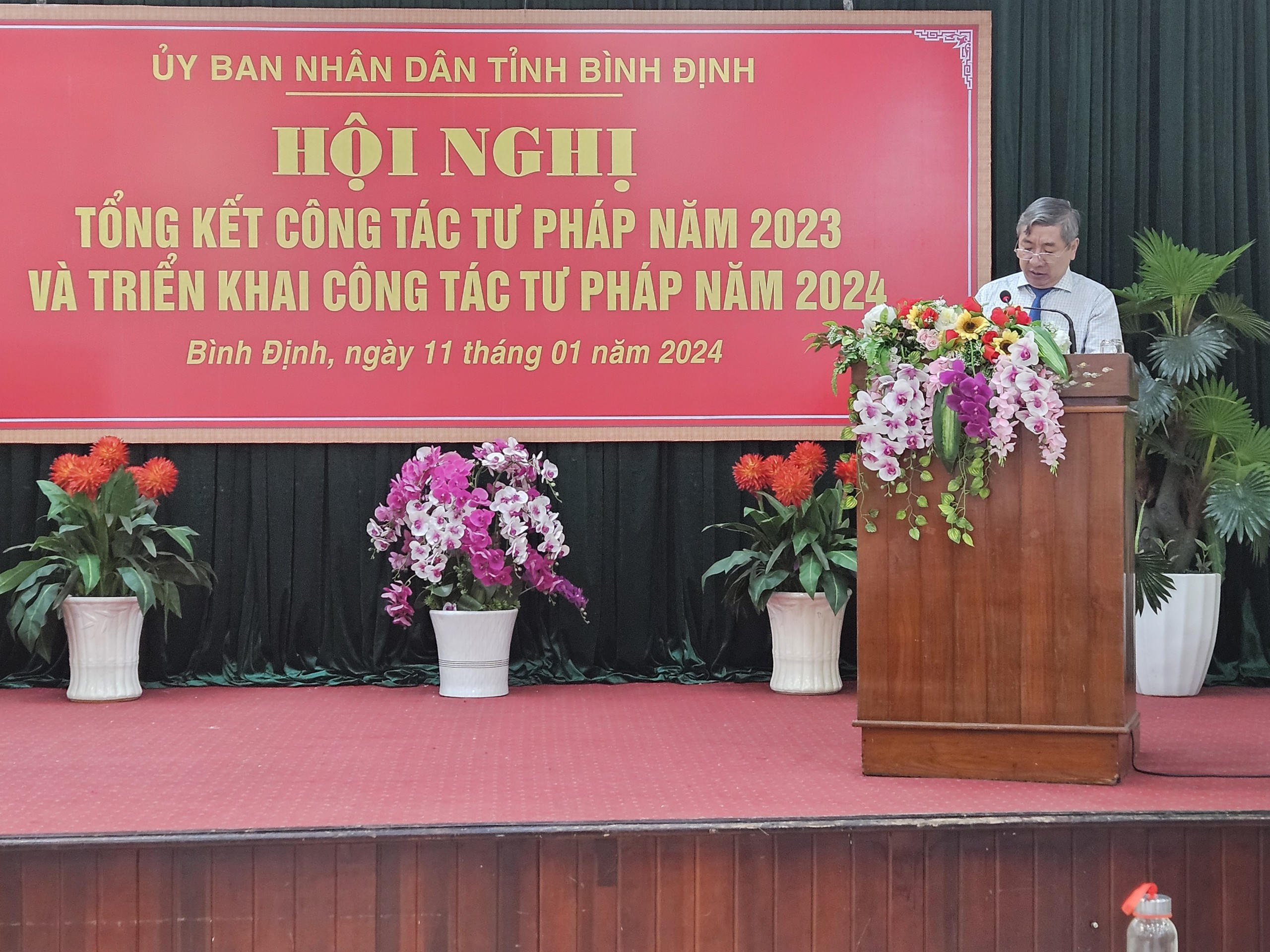 Để hoàn thành tốt nhiệm vụ năm 2024, Phó Chủ tịch UBND tỉnh Nguyễn Tự Công Hoàng chỉ ra: Năm 2024, tỉnh Bình Định đặt mục tiêu Tiếp tục phát huy tiềm năng, lợi thế so sánh của tỉnh và huy động tổng hợp các nguồn lực cho đầu tư phát triển, cùng cả nước thực hiện các giải pháp tháo gỡ khó khăn, thúc đẩy kinh tế tiếp tục tăng trưởng, phấn đấu đạt tốc độ tăng trưởng GRDP khoảng 7,5% - 8%. Trong đó, tập trung xây dựng môi trường kinh doanh bình đẳng, thuận lợi đối với các thành phần kinh tế. Tiếp tục thúc đẩy sản xuất công nghiệp, tái cơ cấu nông nghiệp gắn với chương trình xây dựng nông thôn mới, giảm nghèo bền vững; tập trung đưa du lịch trở thành ngành kinh tế mũi nhọn của tỉnh; chú trọng ứng dụng công nghệ số; phát triển giáo dục, đào tạo nhân lực, tạo việc làm, chăm sóc sức khoẻ Nhân dân, văn hóa, thể thao và bảo vệ môi trường; tăng cường củng cố quốc phòng - an ninh, giữ vững an ninh chính trị, trật tự an toàn xã hội. Để đạt được mục tiêu trên, ngành Tư pháp của tỉnh phải chủ động khắc phục những hạn chế, tồn tại, tập trung thực hiện tốt một số nhiệm vụ trọng đề nghị ngành tư pháp tiếp tục thực hiện tốt nhiệm vụ, vai trò “ người gác cổng” về các vấn đề pháp lý cho toàn hệ thống chính trị tỉnh nhà, từng bước tham mưu cho cấp ủy, chính quyền địa phương xây dựng và hoàn thiện toàn diện các văn bản QPPL trên các lĩnh vực.