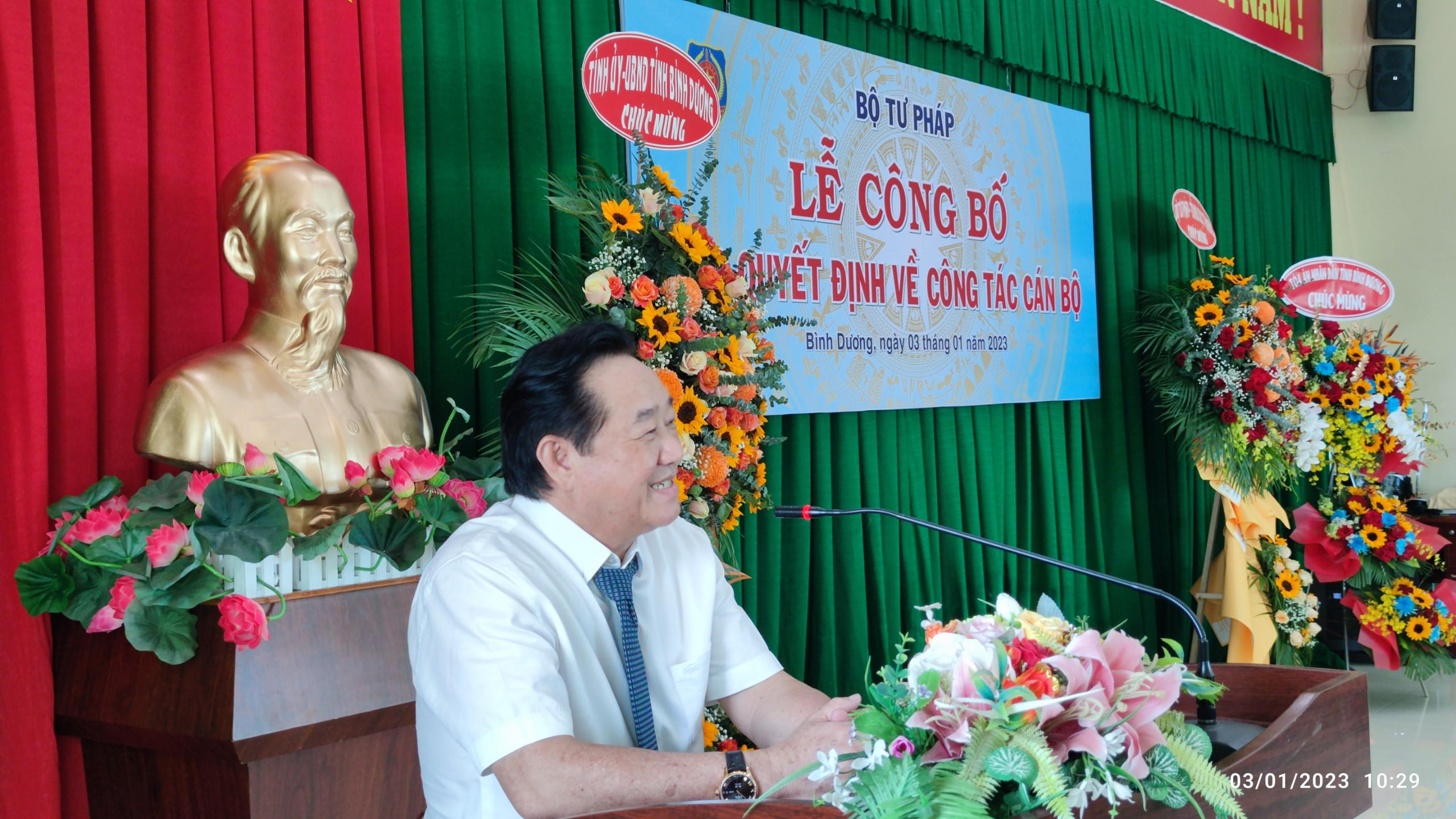 Tham dự buổi lễ có ông Nguyễn Hoàng Thao – Phó Bí thư Thường trực Tỉnh ủy; ông Nguyễn Lộc Hà - Phó Chủ tịch UBND tỉnh; ông Nguyễn Văn Lực – Phó Tổng cục trưởng Thi hành án dân sự; bà Nguyễn Thị Hoa – Giám đốc Sở Tư Pháp cùng các lãnh đạo và toàn thể công chức Cục Thi hành án dân sự tỉnh Bình Dương.