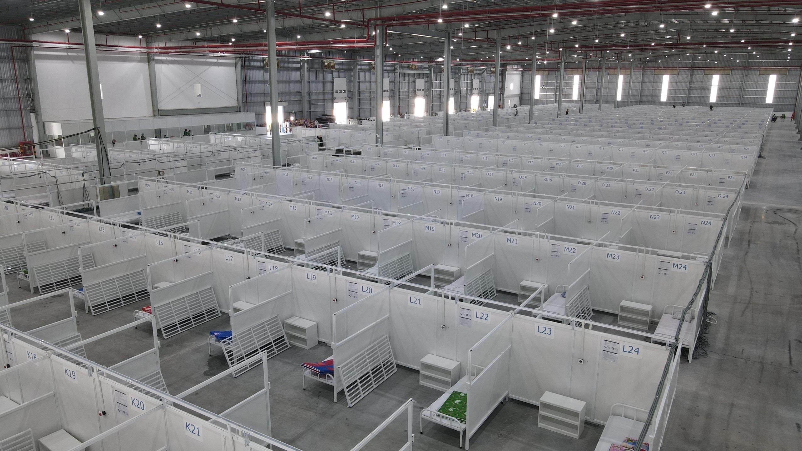Khu Điều trị Bệnh nhân COVID-19 Thới Hòa đặt tại khu nhà xưởng của Công ty cổ phần phát triển công nghiệp BW với quy mô 5.300 giường bệnh. |