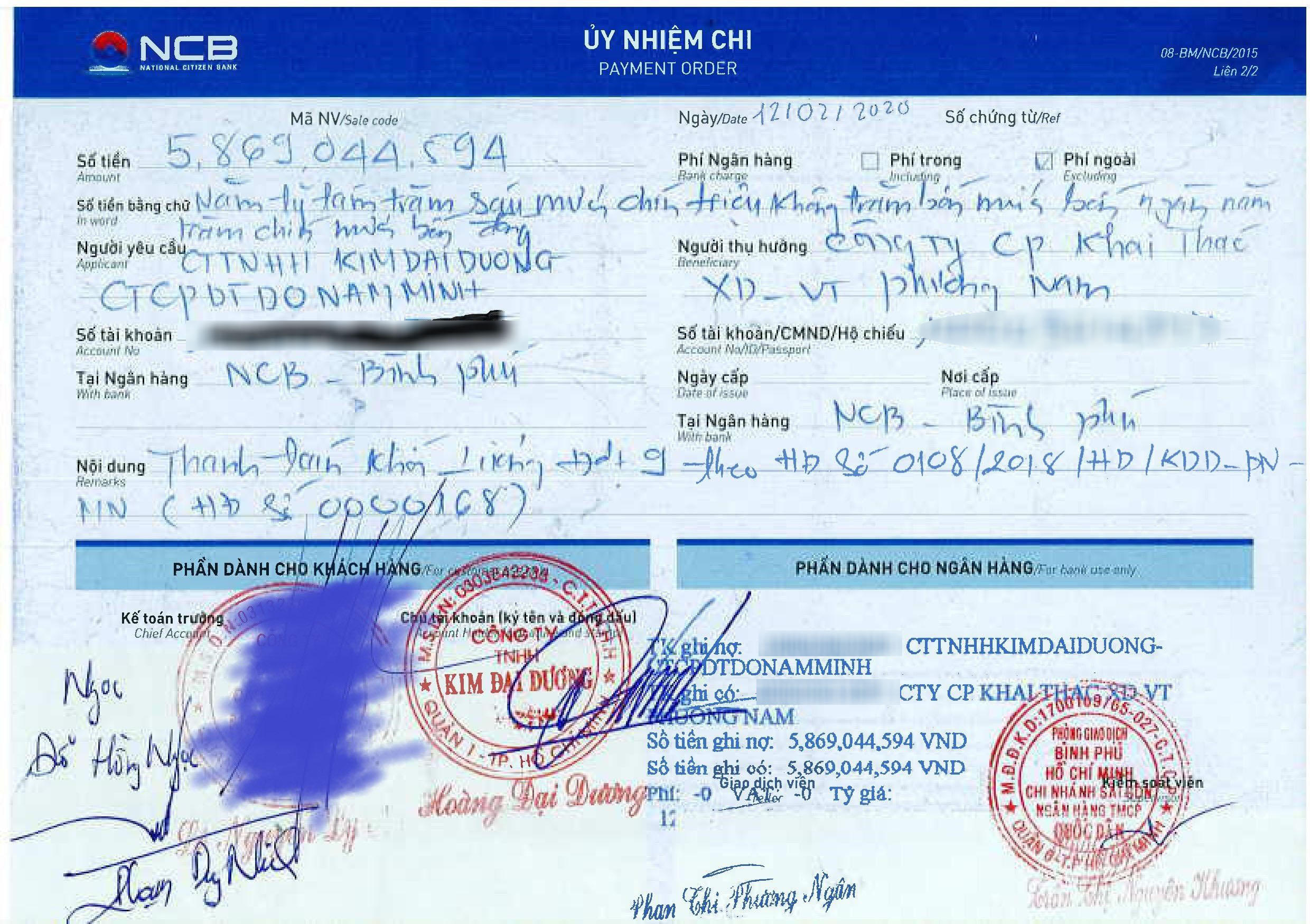 Để tiếp tục thực hiện Dự án, Công ty Kim Đại Dương buộc phải ký hợp đồng thi công với đơn vị Nhà thầu mới là Công ty CP Xây dựng Số 5.