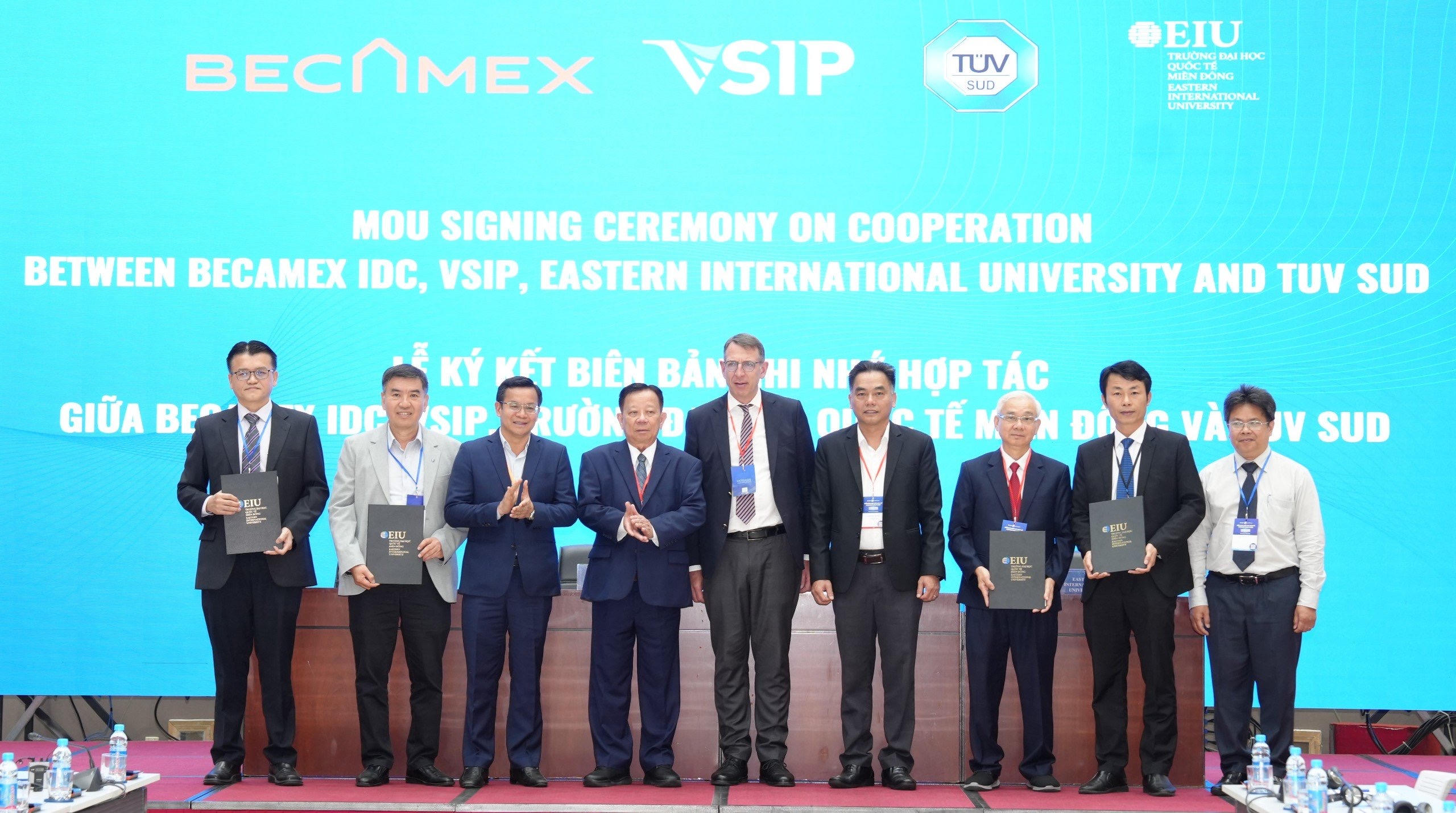 Đại diện Becamex IDC, TÜV SÜD Asia Pacific Pte. Ltd, VSIP và EIU hợp tác đẩy nhanh quá trình áp dụng các công nghệ của công nghiệp 4.0 tại Việt Nam nói chung và tỉnh Bình Dương nói riêng. |
