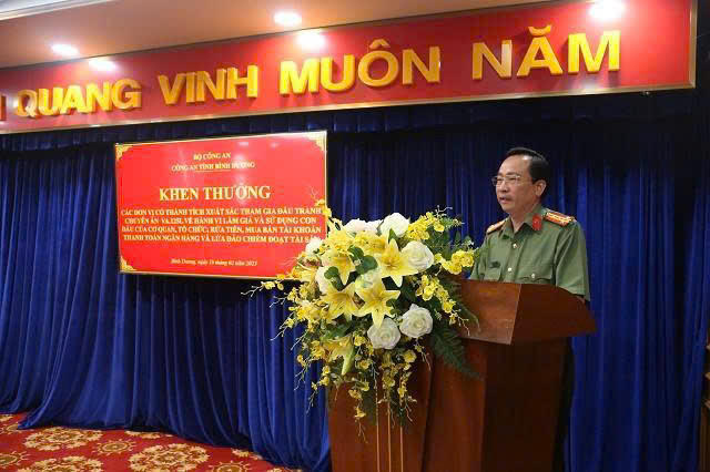 (PLVN) -Ngày 10/2, Công an tỉnh Bình Dương tổ chức lễ trao thưởng cho các đơn vị nghiệp vụ có thành tích xuất sắc trong chuyên án triệt phá đường dây tội phạm sử dụng công nghệ cao để lừa đảo, chiếm đoạt tài sản quy mô lớn.