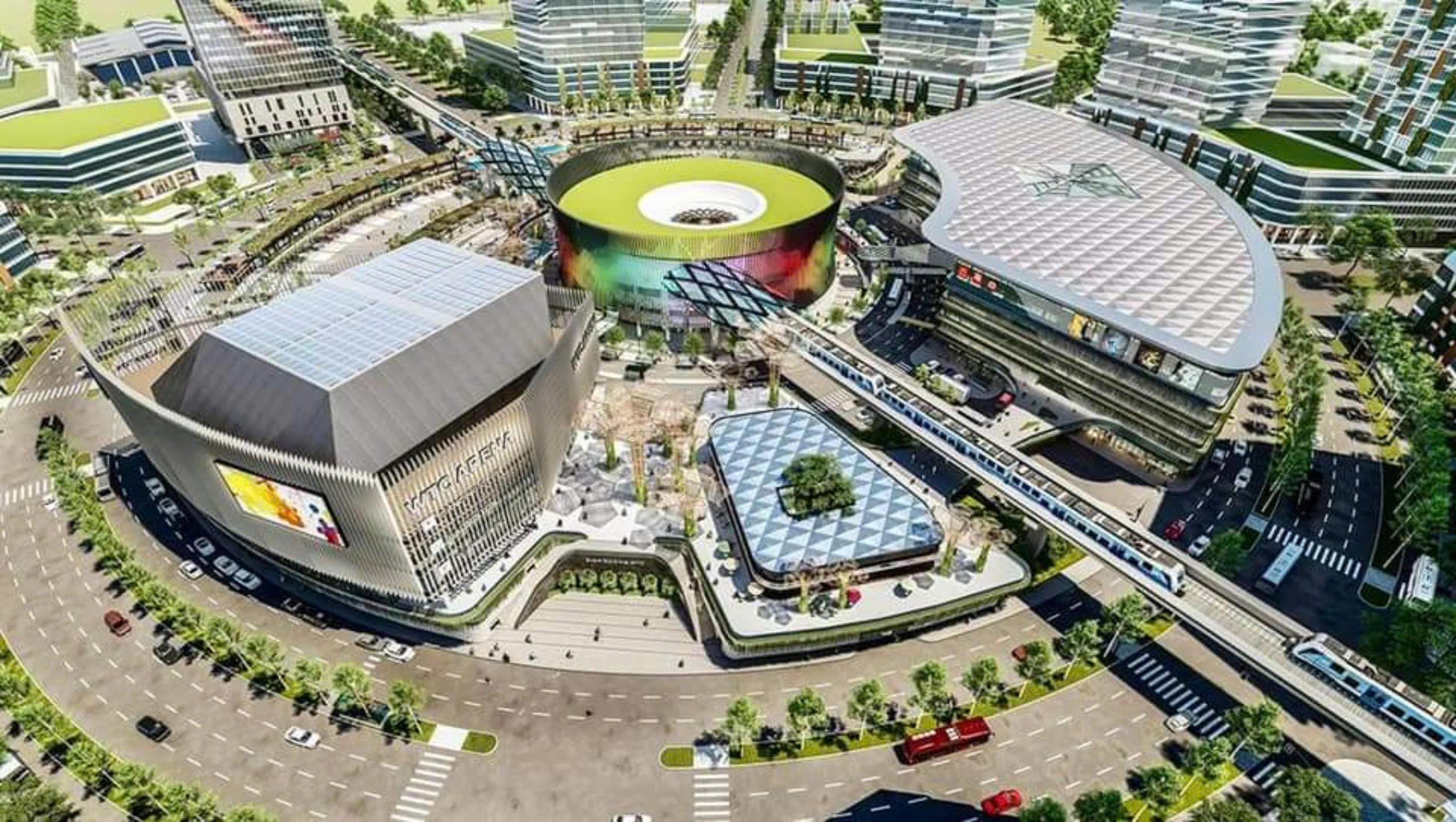 Phối cảnh nhà ga trung tâm tại vòng xoay A1 thuộc thành phố mới Bình Dương. |