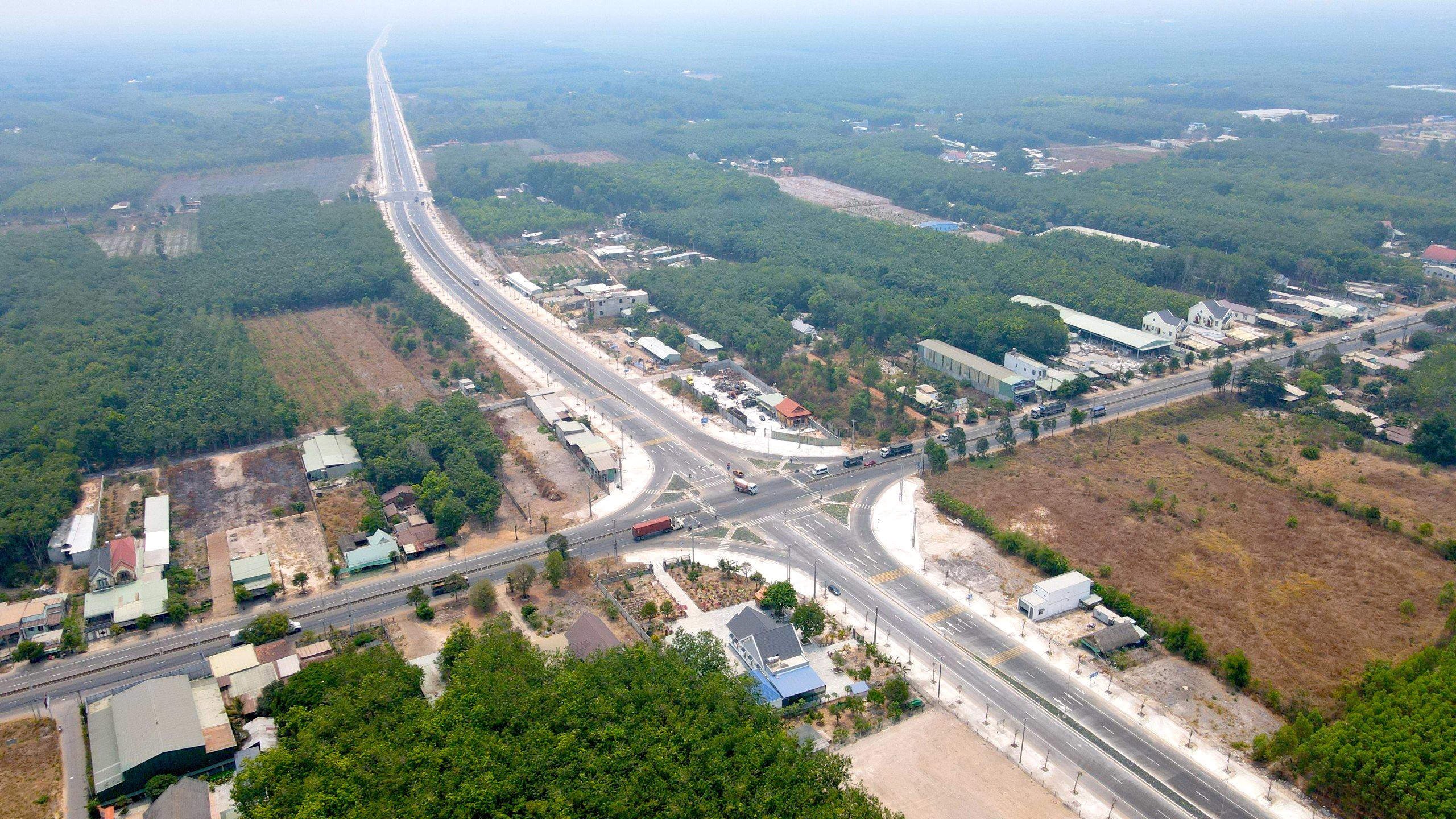 Nút giao QL 13 với đường Tạo lực Bắc Tân Uyên - Phú Giáo - Bàu Bàng hướng vào KCN Bàu Bàng, cửa ngõ giao thương của khu vực Đông Nam Bộ và Tây Nguyên. |