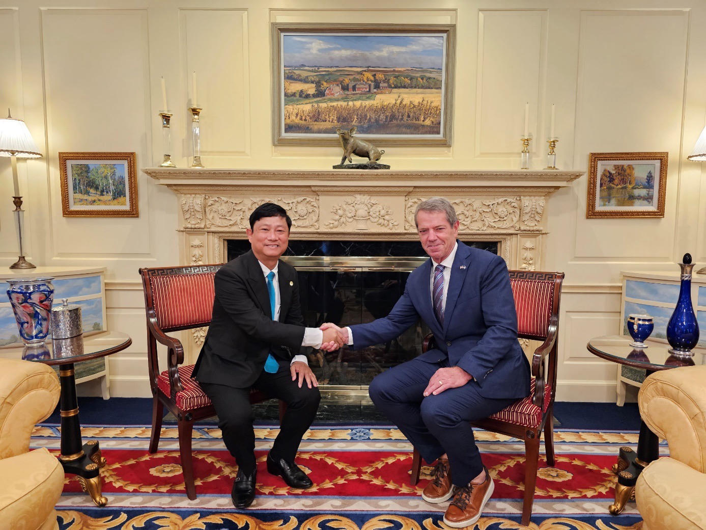 Chủ tịch UBND tỉnh Bình Dương Võ Văn Minh và Thống đốc Jim Pillen |