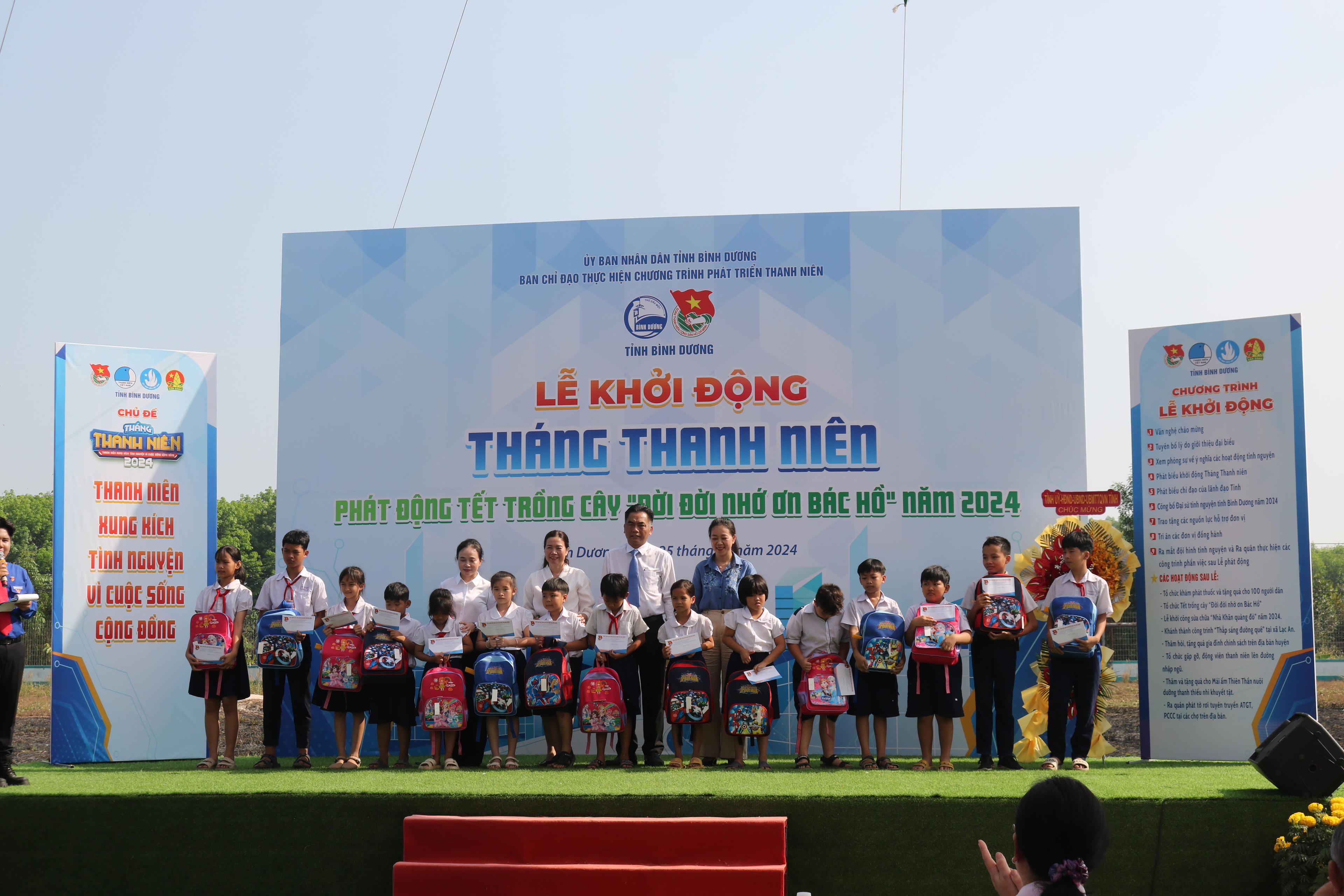 Tại lễ khởi động, Tỉnh đoàn Bình Dương ra mắt các đội hình tình nguyện gồm: tri thức trẻ chuyển giao khoa học kỹ thuật; thanh niên tình nguyện tham gia chuyển đổi số cộng đồng; thanh niên tình nguyện xây dựng đô thị văn minh; thanh niên tình nguyện xây dựng nông thôn mới; thầy thuốc trẻ vì sức khỏe cộng đồng; thanh niên tuyên truyền pháp luật; thanh niên xung kích tham gia giữ gìn, bảo đảm trật tự an toàn giao thông. Dịp này, Tỉnh đoàn Bình Dương trao tặng 30 suất học bổng “Thắp sáng ước mơ thiếu nhi Bình Dương” tặng các em học sinh khó khăn trên địa bàn huyện Bắc Tân Uyên; đồng thời, phối hợp với Báo Pháp luật Việt Nam tặng 10 chiếc xe đạp tặng học sinh khó khăn.