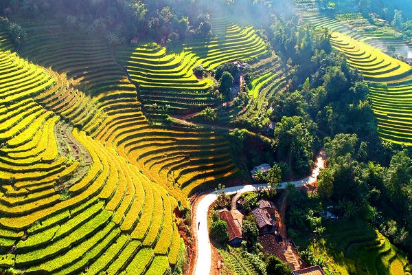 Mùa lúa chín vàng trên những cánh đồng bậc thang ở Bình Liêu. |