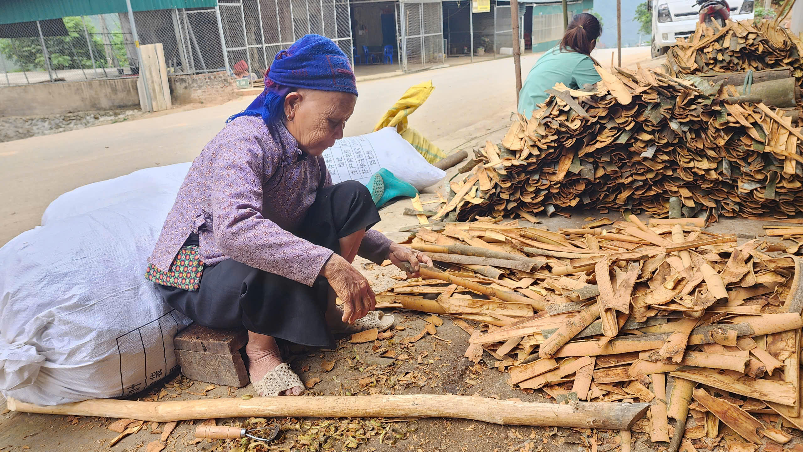 Mỗi vụ thu hoạch, không chỉ rừng núi nhộn nhịp người bóc quế, mà các điểm thu mua tại nhà dân cũng tấp nập không kém. Quế sau khi thu được chở về sơ chế, phân loại thành quế thanh để phơi khô và quế vụn để tận thu. Nhờ vậy, người dân hầu như khai thác được trọn vẹn giá trị từ cây quế.