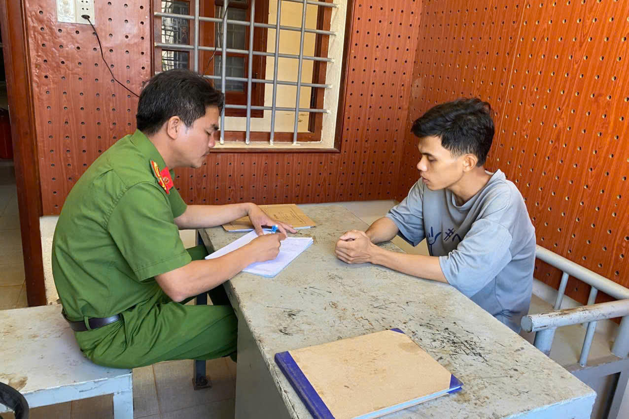 Cơ quan công an làm việc với đối tượng Trần Văn Thái. |