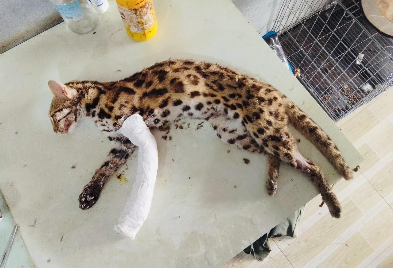 Bình Phước: Đi chợ, bác sĩ thú y phát hiện mèo báo quý hiếm bị mắc bẫy