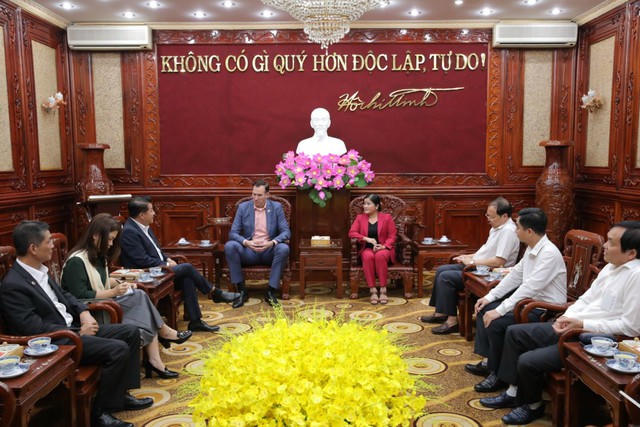 Bà Trần Tuệ Hiền - Chủ tịch UBND tỉnh Bình Phước tiếp Chủ tịch EuroCham Gabor Flulit và các đơn vị đồng tổ chức Diễn đàn. |
