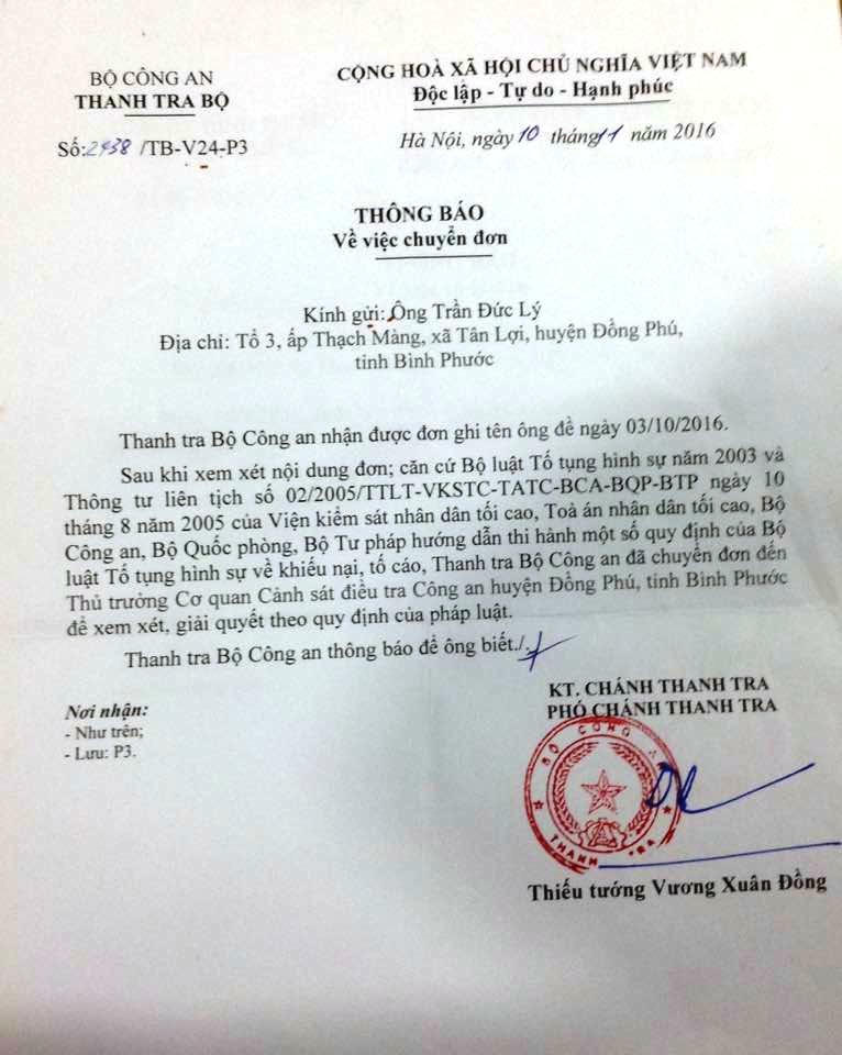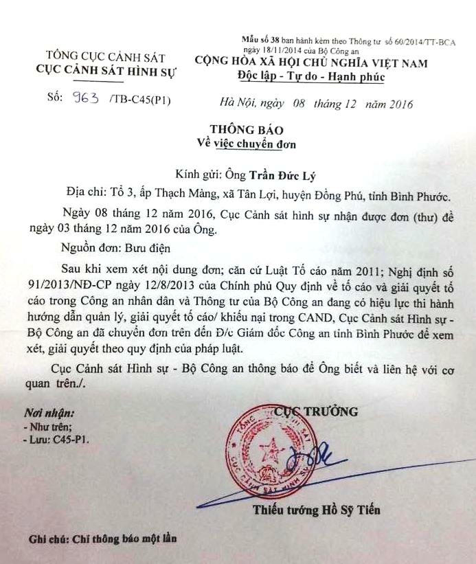 Cụ thể, khoảng tháng 8-9/2015 Cty Phát Lộc có văn bản gửi các cơ quan chức năng huyện Đồng Phú, cho rằng ông Lý chặt 16ha cao su của Cty SASCO. Công an đã vào cuộc. Tuy nhiên, đến nay chưa có bằng chứng ông Lý chặt đến 16ha cao su.