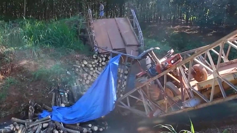 Bình Phước: Sập cầu Suối Mum khi chiếc máy cày chở củi đi qua
