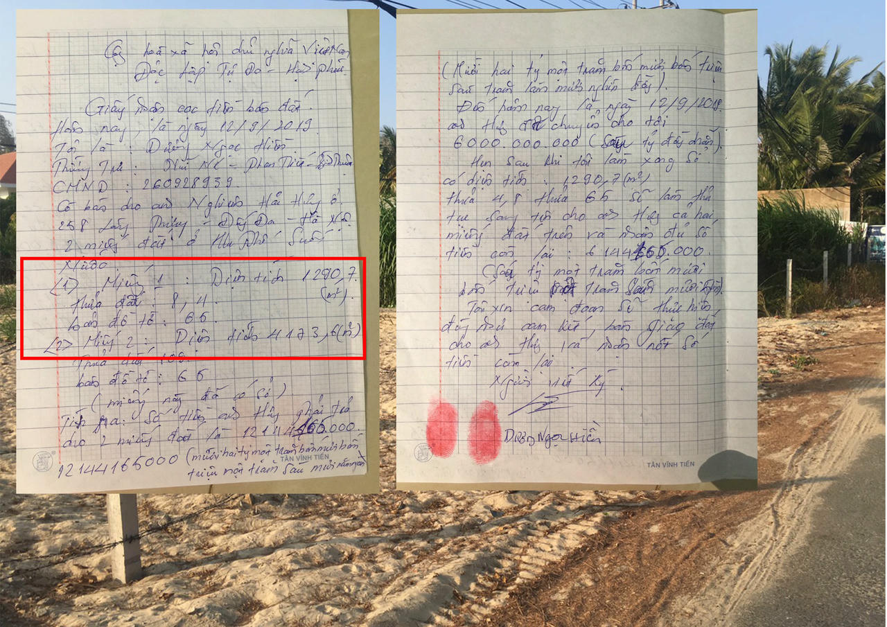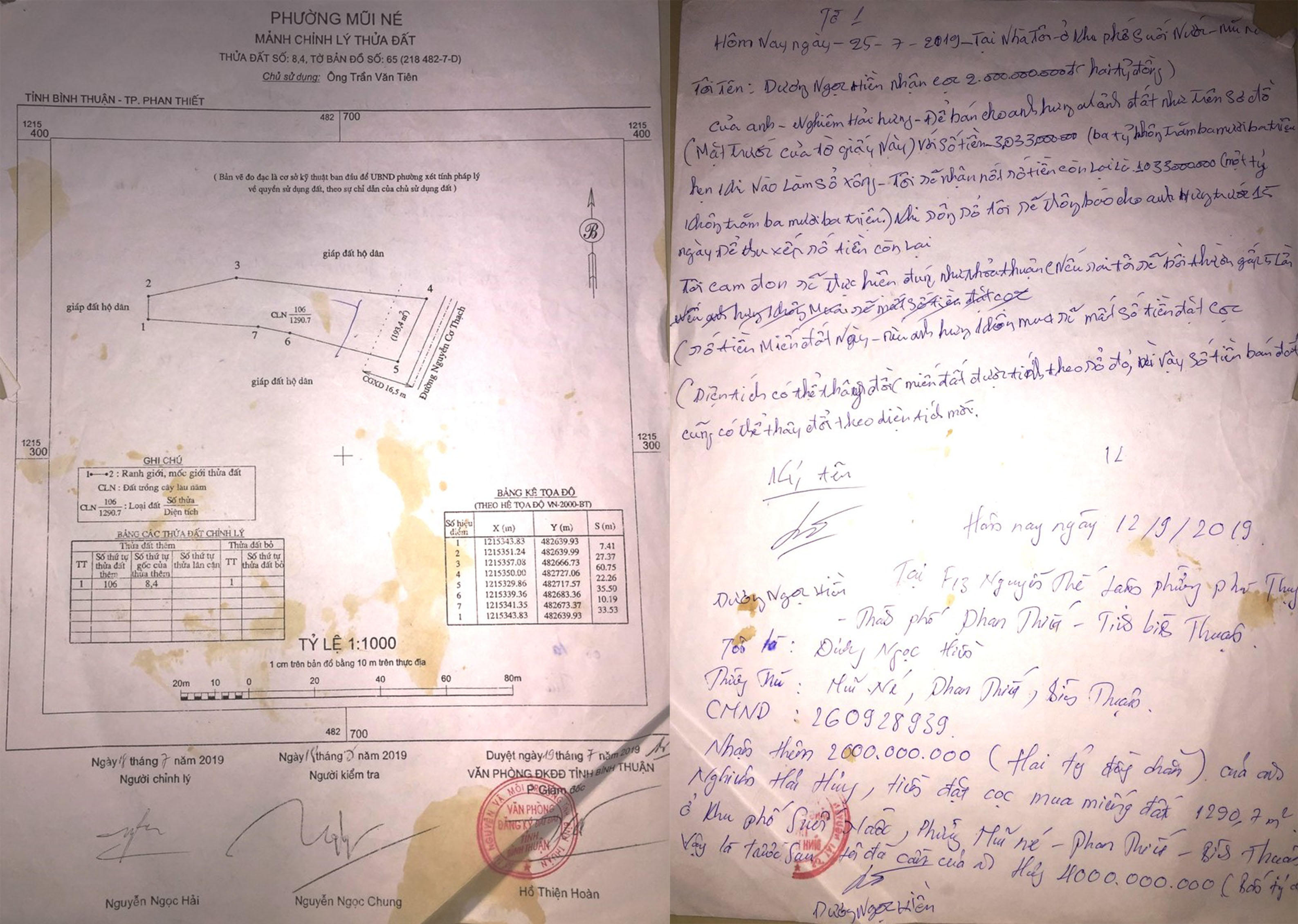 Khi đến nơi, “cò” đất giới thiệu thêm Dương Ngọc Hiền (HKTT tại Mũi Né, Phan Thiết) chính là cháu của chủ đất được uỷ quyền để toàn quyền quyết định về thửa đất trên.