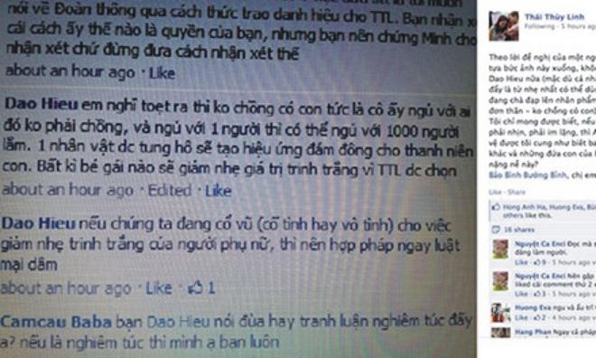 Ngay sau đó, không ít ý kiến trái chiều đã bùng nổ cho rằng bà mẹ đơn thân Thái Thùy Linh được nhận danh hiệu là không thỏa đáng. Trên diễn đàn nhà báo trẻ, một nickname Bút Lông đăng đàn: "Trung ương Đoàn cổ vũ giới trẻ làm mẹ không cần lập gia đình bằng cách trao “Gương mặt trẻ tiêu biểu” cho ca sĩ Thái Thùy Linh. Hoan hô Đoàn!” đã tạo làn sóng tranh luận dữ dội.