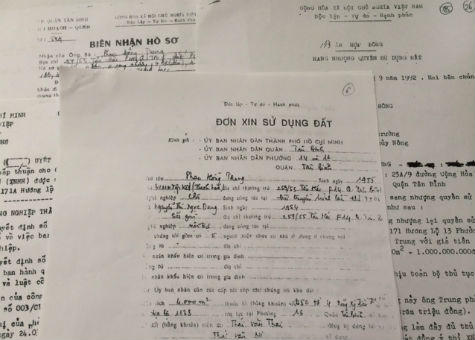 Sau khi nhận chuyển nhượng và đầu tư xây dựng trên đất, Cty Trường An đã làm hồ sơ xin cấp quyền sử dụng đất nộp cho UBND quận Tân Bình và Ban Quản lý ruộng đất thành phố để làm thủ tục cấp quyền sử dụng đất (Biên nhận hồ sơ số 584 ngày 29/10/1992 và những văn bản sao chụp từ hồ sơ lưu trữ tại Văn phòng Đăng ký quyền sử dụng đất TP.HCM).