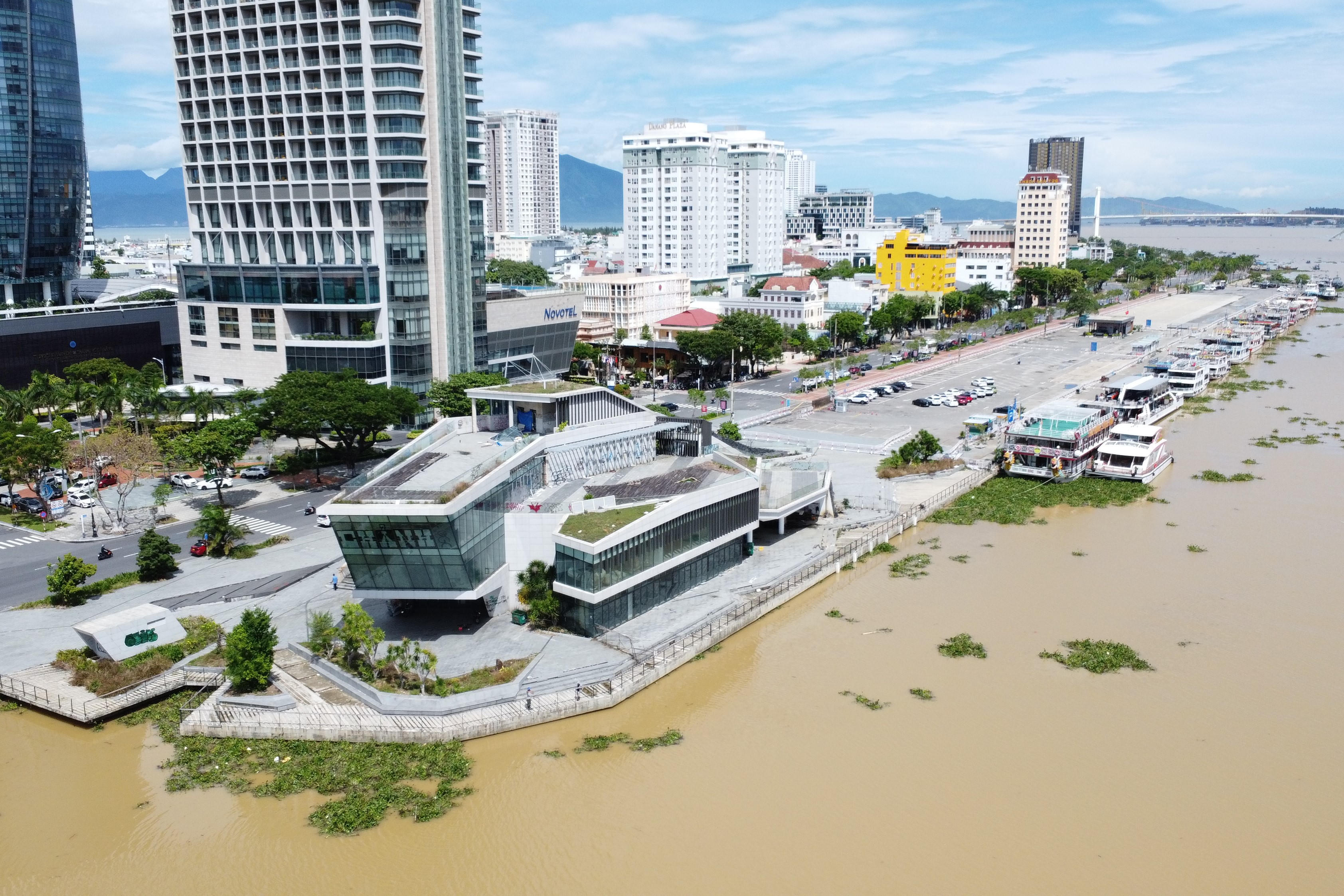 | Không chỉ các bãi biển, những ngày qua, hàng tấn lục bình từ thượng nguồn bị nước cuốn dạt về sông Hàn. Trong hình là lục bình tấp vào bờ khu vực Bến du thuyền và Cảng sông Hàn. |