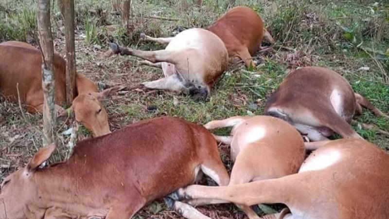 Bò chết la liệt do bị sét đánh