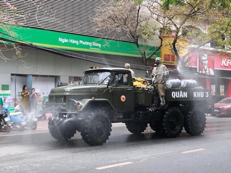 Với kế hoạch phun khử trùng toàn TP, Bộ CHQS TP Hải Phòng phối hợp với lực lượng Hóa học Quân khu 3, Sở Y tế, Công an tiến hành phun thuốc khử khuẩn trên tất cả các tuyến phố chính, khu vực quan trọng.