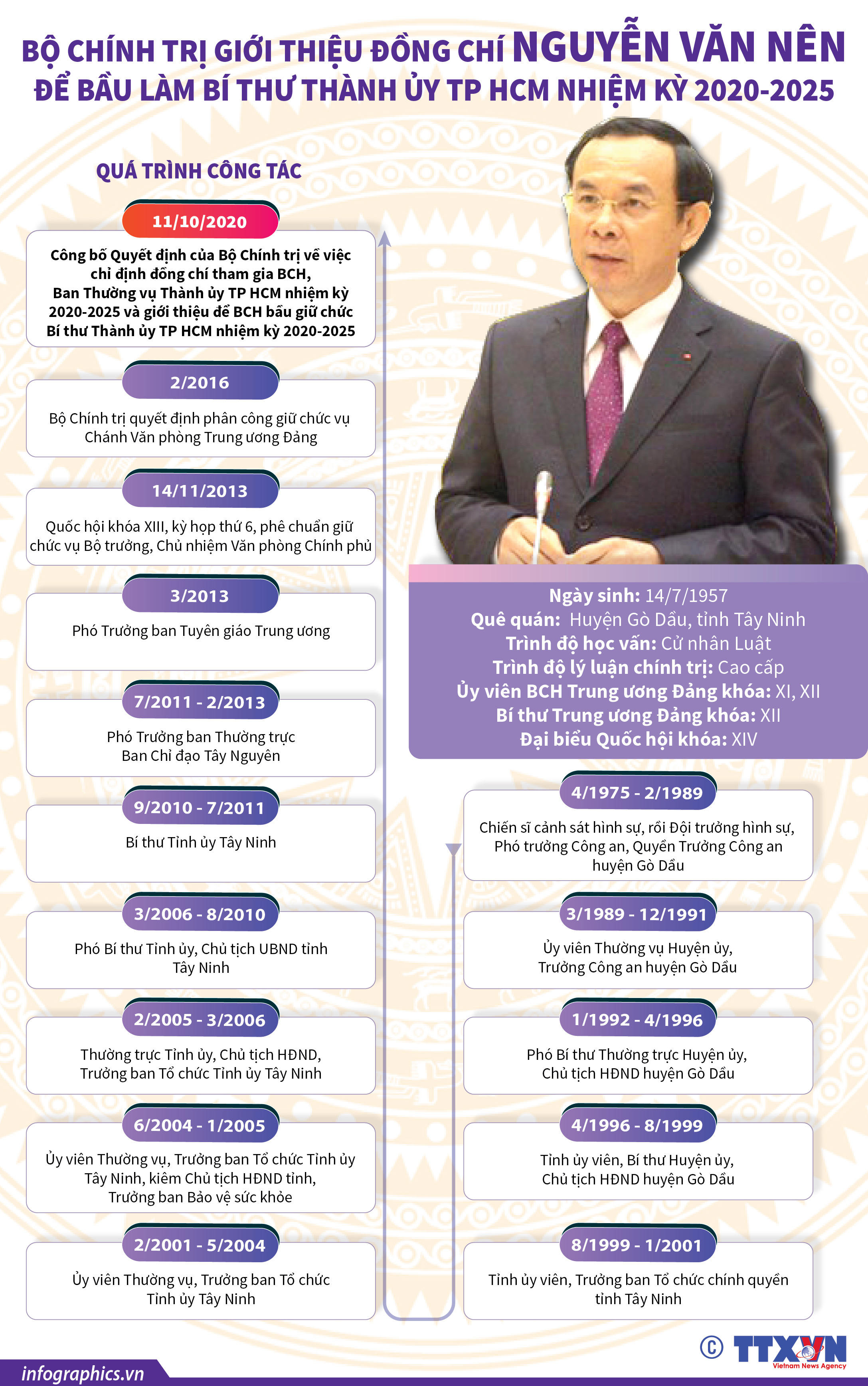 (PLVN) - Ông Nguyễn Văn Nên, 63 tuổi, Chánh văn phòng Trung ương Đảng được chỉ định tham gia Ban Chấp hành, Ban Thường vụ và giới thiệu bầu Bí thư Thành ủy TP HCM nhiệm kỳ 2020-2025.
