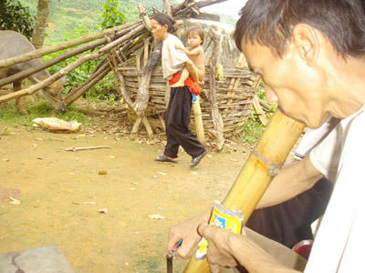 | Mất vợ, anh Giấy đành lấy rượu và thuốc lào làm bạn. |