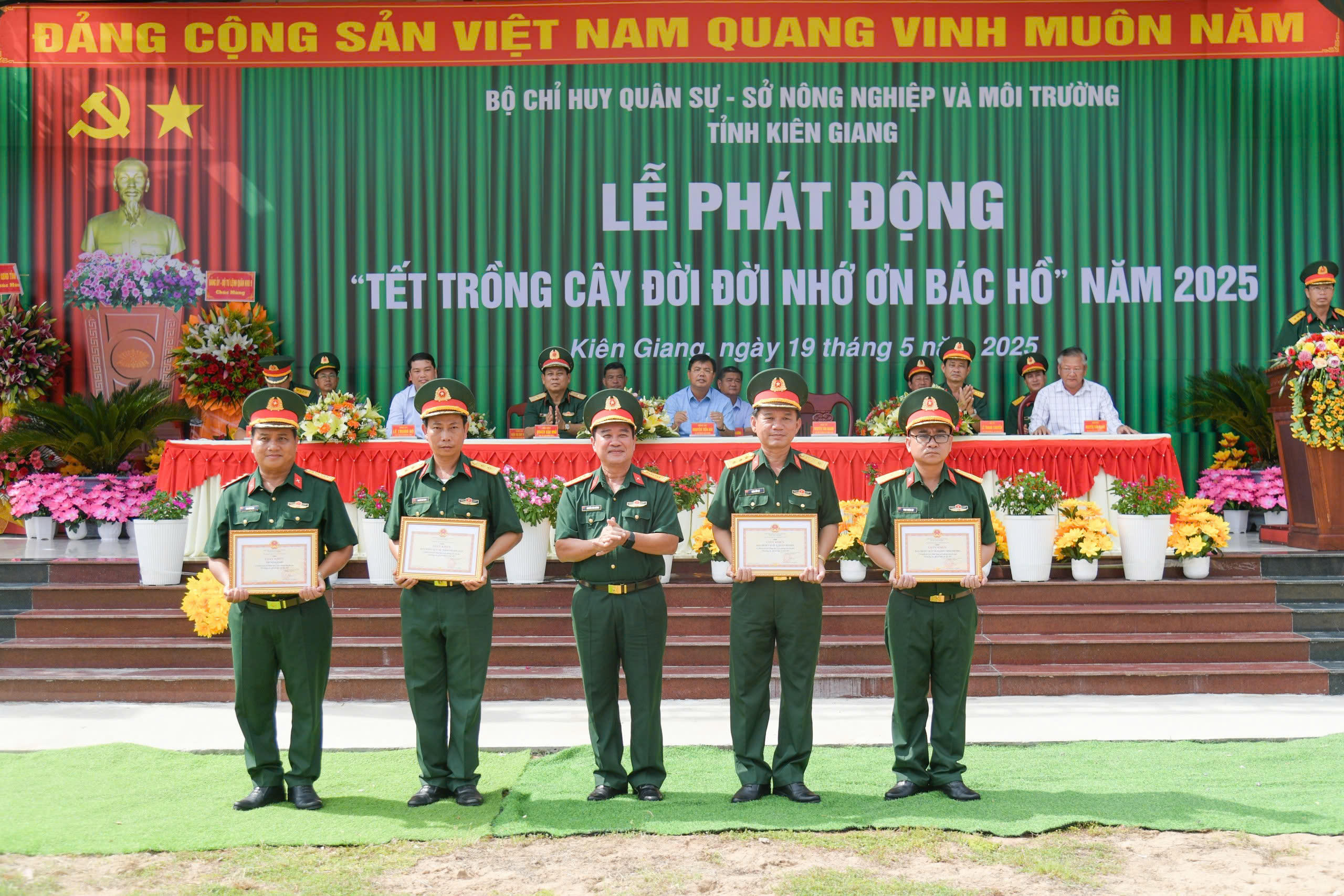 (PLVN) - Nhân dịp kỷ niệm 135 năm Ngày sinh Chủ tịch Hồ Chí Minh (19/5/1890 – 19/5/2025), tại Trung đoàn Bộ binh 893 (ấp Lung Lớn, xã Kiên Bình, huyện Kiên Lương), Bộ Chỉ huy Quân sự (CHQS) tỉnh Kiên Giang phối hợp với Sở Nông nghiệp và Môi trường tỉnh vừa tổ chức lễ phát động “Tết trồng cây đời đời nhớ ơn Bác Hồ” năm 2025. Đây là đơn vị được Quân khu 9 chọn làm điểm tổ chức lễ phát động trong toàn quân khu.