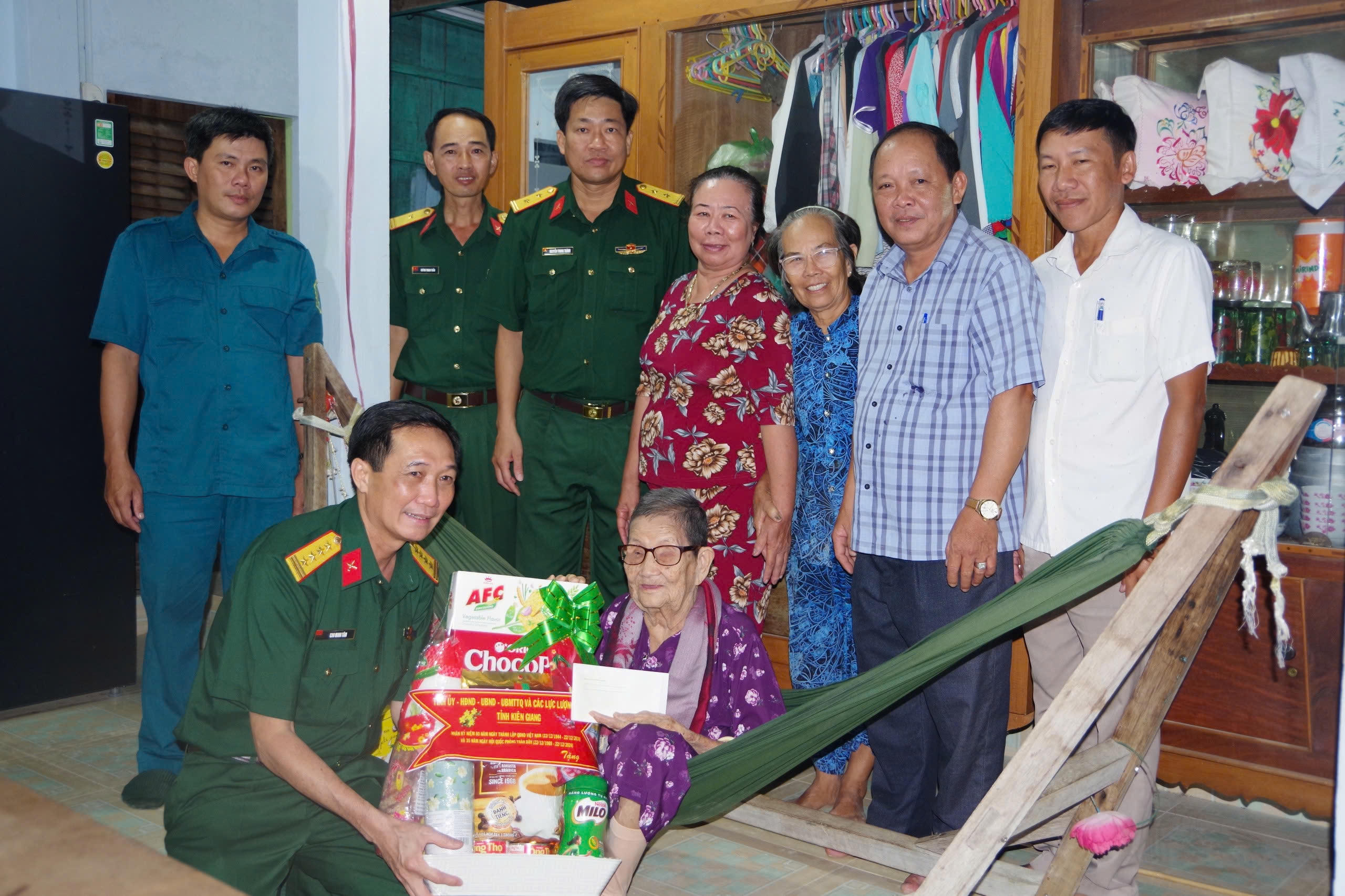 Đoàn công tác do đại tá Cao Minh Tâm, Phó Chính ủy Bộ CHQS tỉnh Kiên Giang làm trưởng đoàn đã đến thăm, tặng quà Mẹ Việt Nam Anh hùng Nguyễn Thị Đào; mẹ Việt Nam Anh hùng Nguyễn Thị Gần hiện đang sinh sống trên địa bàn huyện An Minh. Đồng thời đoàn thăm, tặng quà cho Anh hùng LLVT nhân dân Dương Bá Lê, hiện đang sinh sống trên địa bàn TP Rạch Giá.