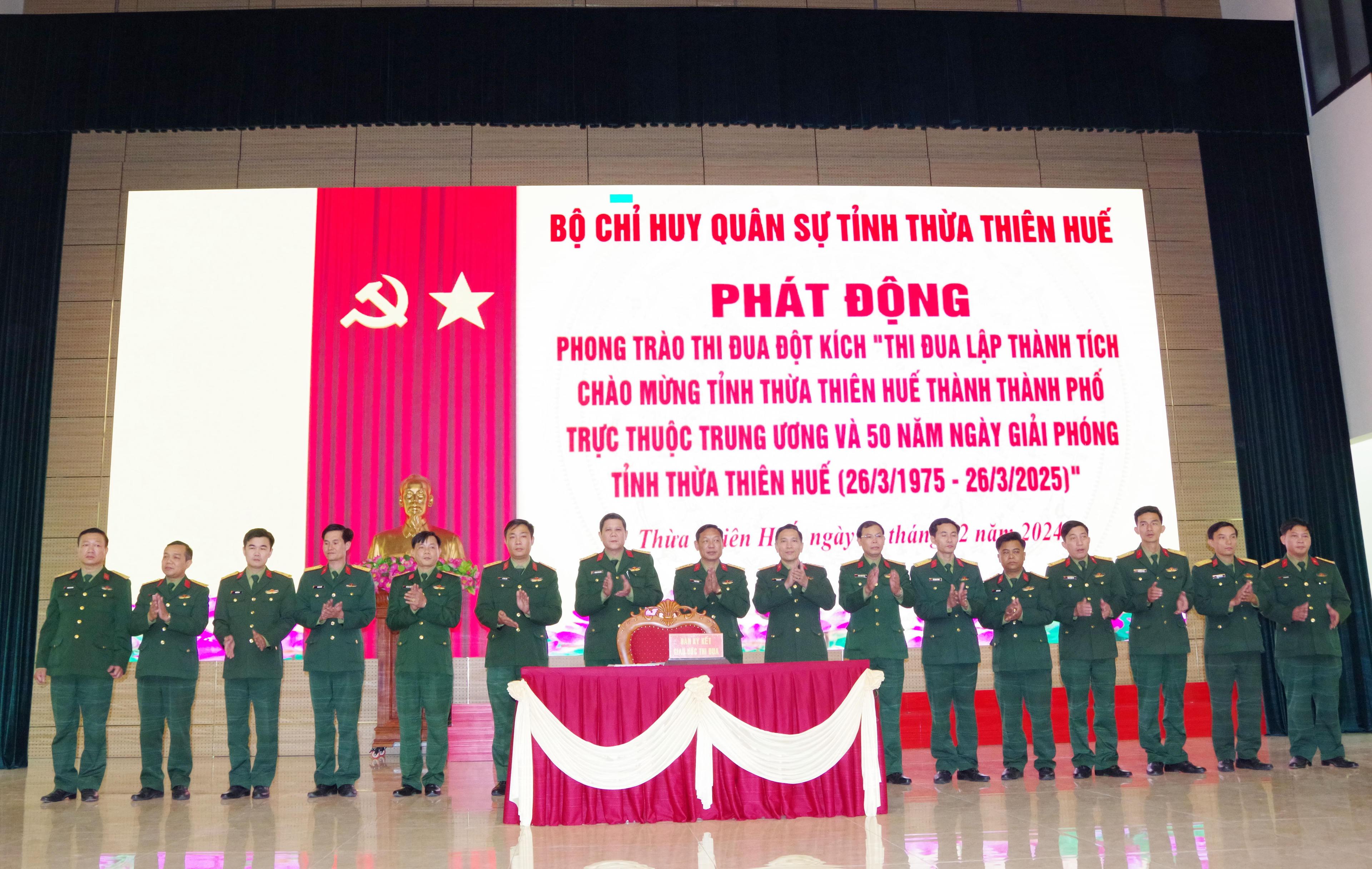 Tại Hội nghị, Bộ CHQS tỉnh cũng đã phát động phong trào Thi đua lập thành tích chào mừng tỉnh Thừa Thiên Huế trở thành thành phố trực thuộc trung ương và 50 năm giải phóng quê hương Thừa Thiên Huế ( 26/3/1975 – 26/3/2025); đồng thời trao tặng khen thưởng đối với 16 tập thể, 15 cá nhân đã hoàn thành xuất sắc trong phong trào Thi đua Quyết thắng của Lực lượng vũ trang Quân khu năm 2024
