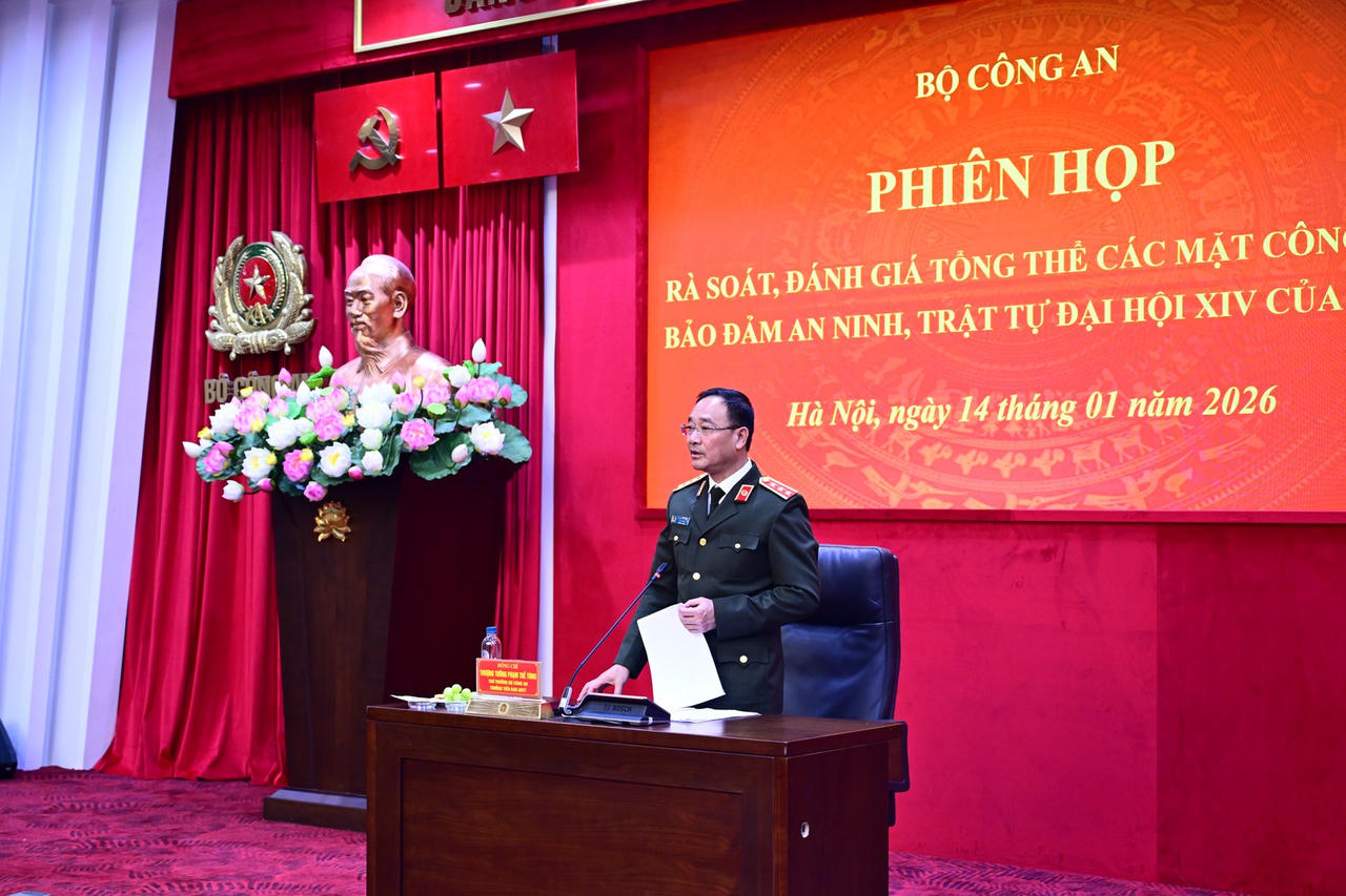 (PLVN) - Chiều nay, 14/1, Thượng tướng Phạm Thế Tùng - Thứ trưởng Bộ Công an, Trưởng Tiểu ban an ninh, trật tự (ANTT) Đại hội XIV của Đảng chủ trì phiên họp rà soát tổng thể các mặt công tác bảo đảm an ninh, trật tự Đại hội.