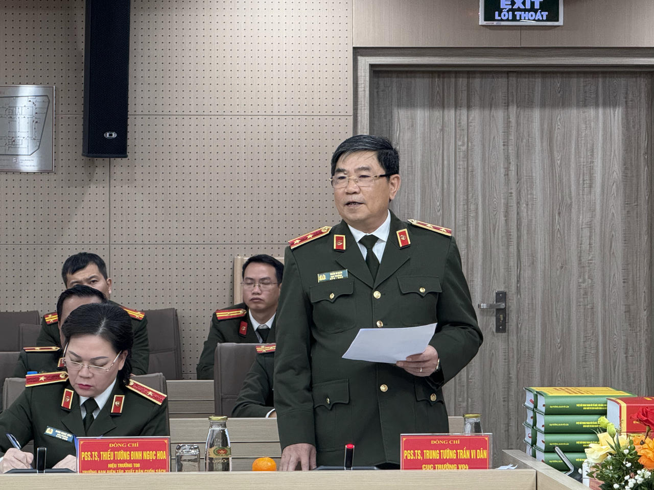 Trung tướng, PGS.TS. Trần Vi Dân, Cục trưởng Cục Khoa học, Chiến lược và Lịch sử Công an trình bày nội dung cơ bản của cuốn sách của Tổng Bí thư Tô Lâm. Ảnh: PV |