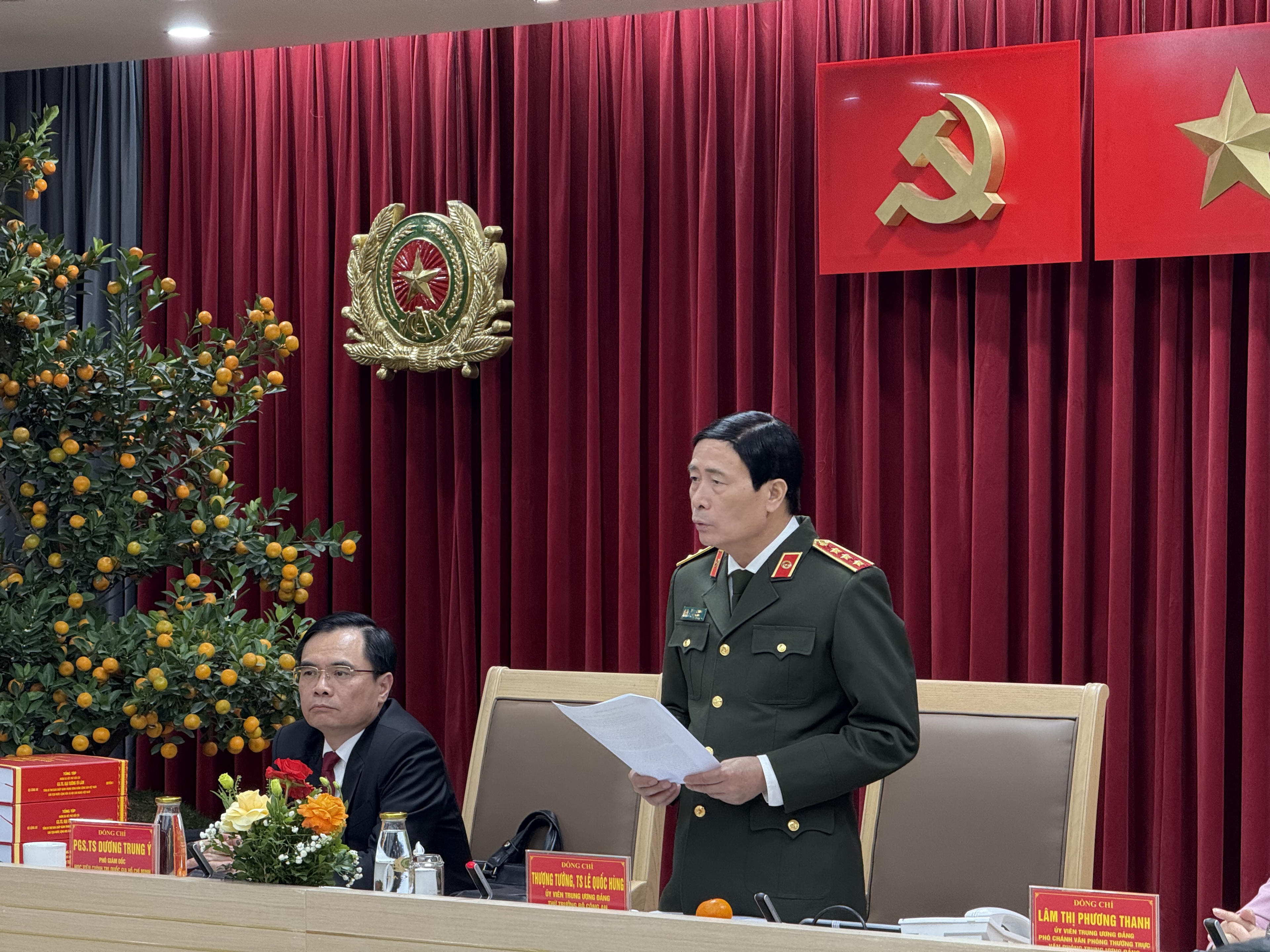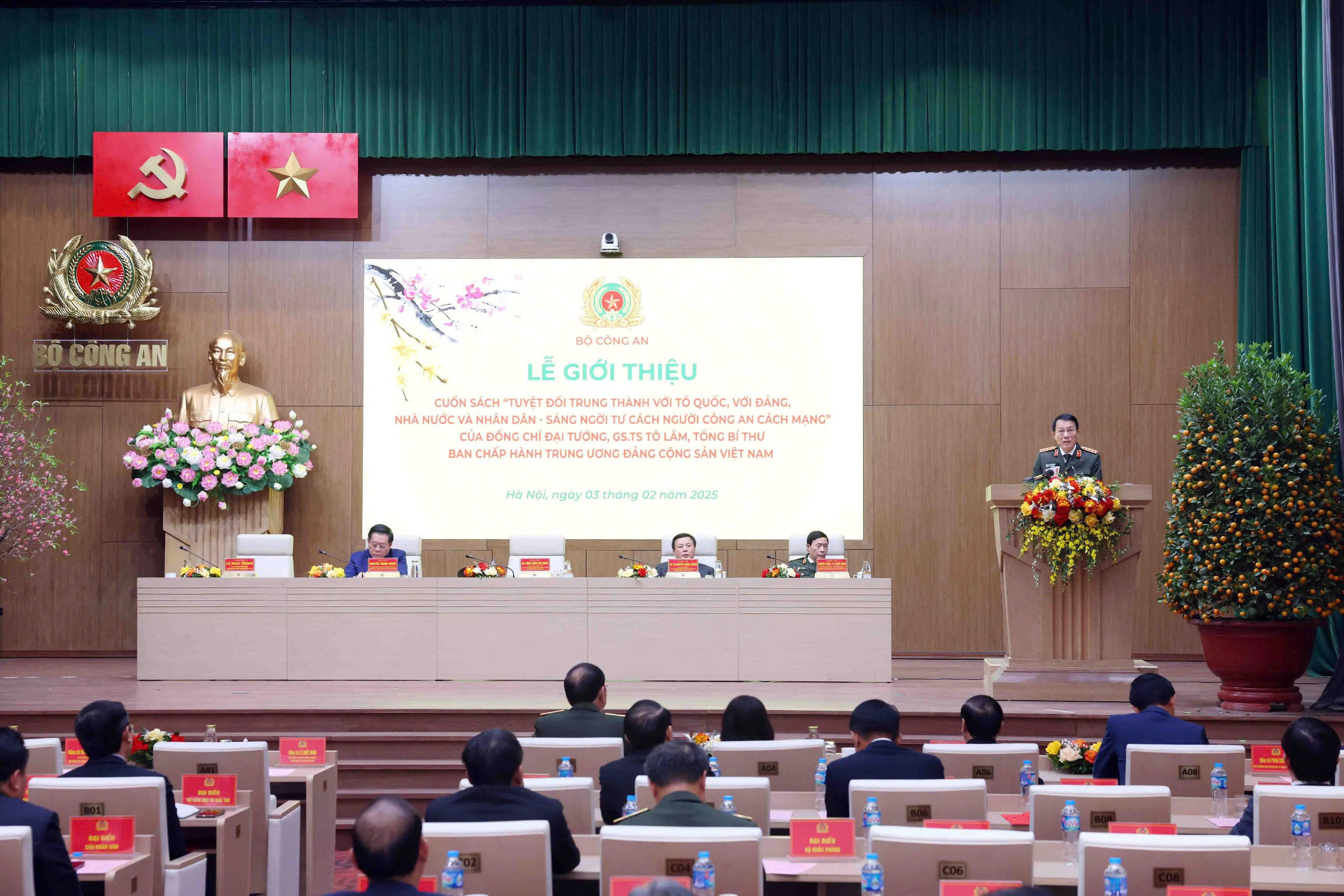 Đại tướng Lương Tam Quang, Ủy viên Bộ Chính trị, Bí thư Đảng ủy Công an Trung ương, Bộ trưởng Bộ Công an chủ trì buổi lễ. Đồng chủ trì có: Ủy viên Bộ Chính trị, Bí thư Trung ương Đảng, Trưởng Ban Tuyên giáo và Dân vận Trung ương Nguyễn Trọng Nghĩa; GS.TS Nguyễn Xuân Thắng, Ủy viên Bộ Chính trị, Giám đốc Học viện Chính trị Quốc gia Hồ Chí Minh, Chủ tịch Hội đồng Lý luận Trung ương; Bí thư Trung ương Đảng, Chánh Văn phòng Trung ương Đảng Lê Hoài Trung; Thượng tướng, TS. Lê Quốc Hùng, Ủy viên Trung ương Đảng, Thứ trưởng Bộ Công an.