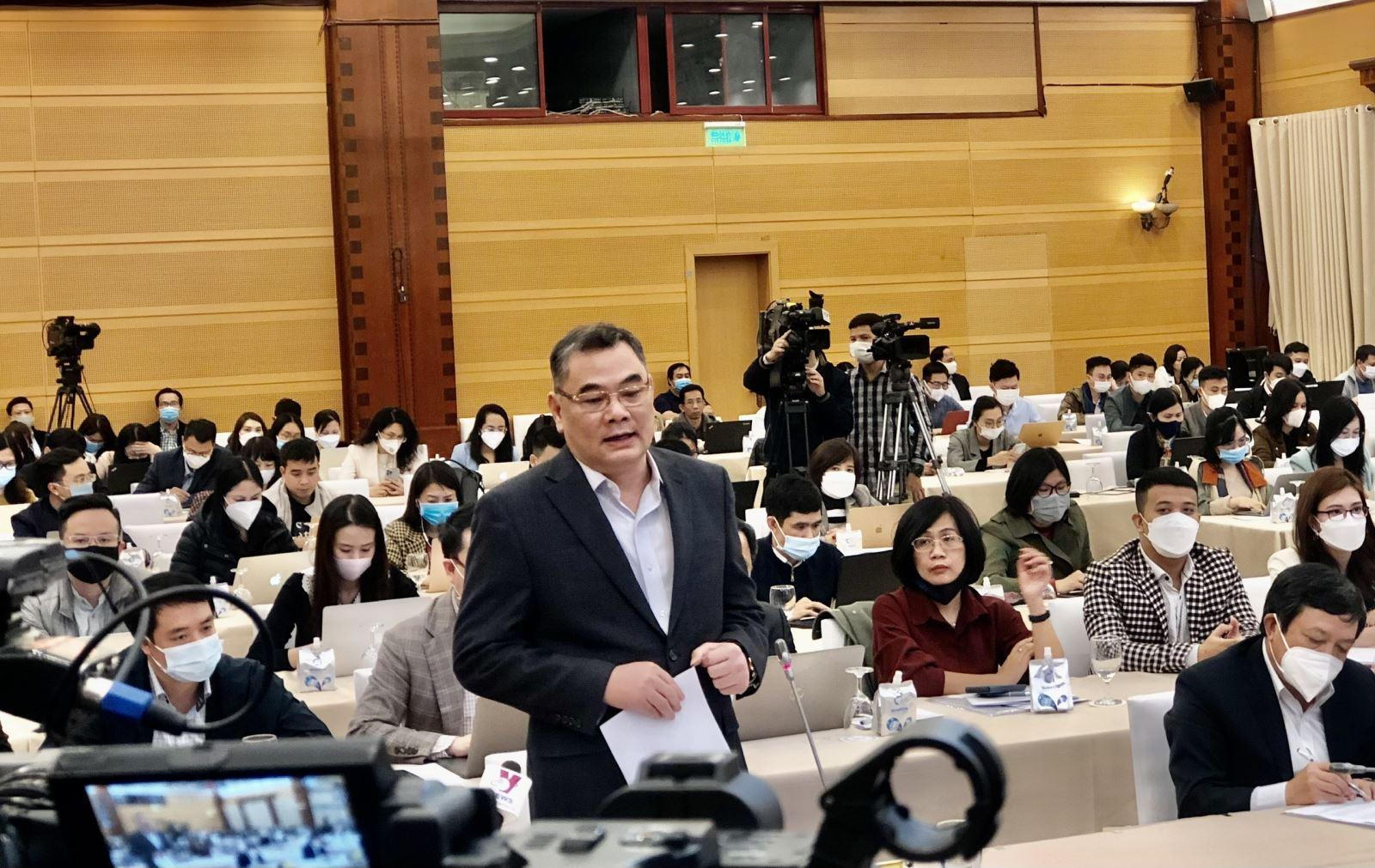 Trung tướng Tô Ân Xô - Chánh văn phòng Bộ Công an trả lời báo chí tại cuộc họp báo.