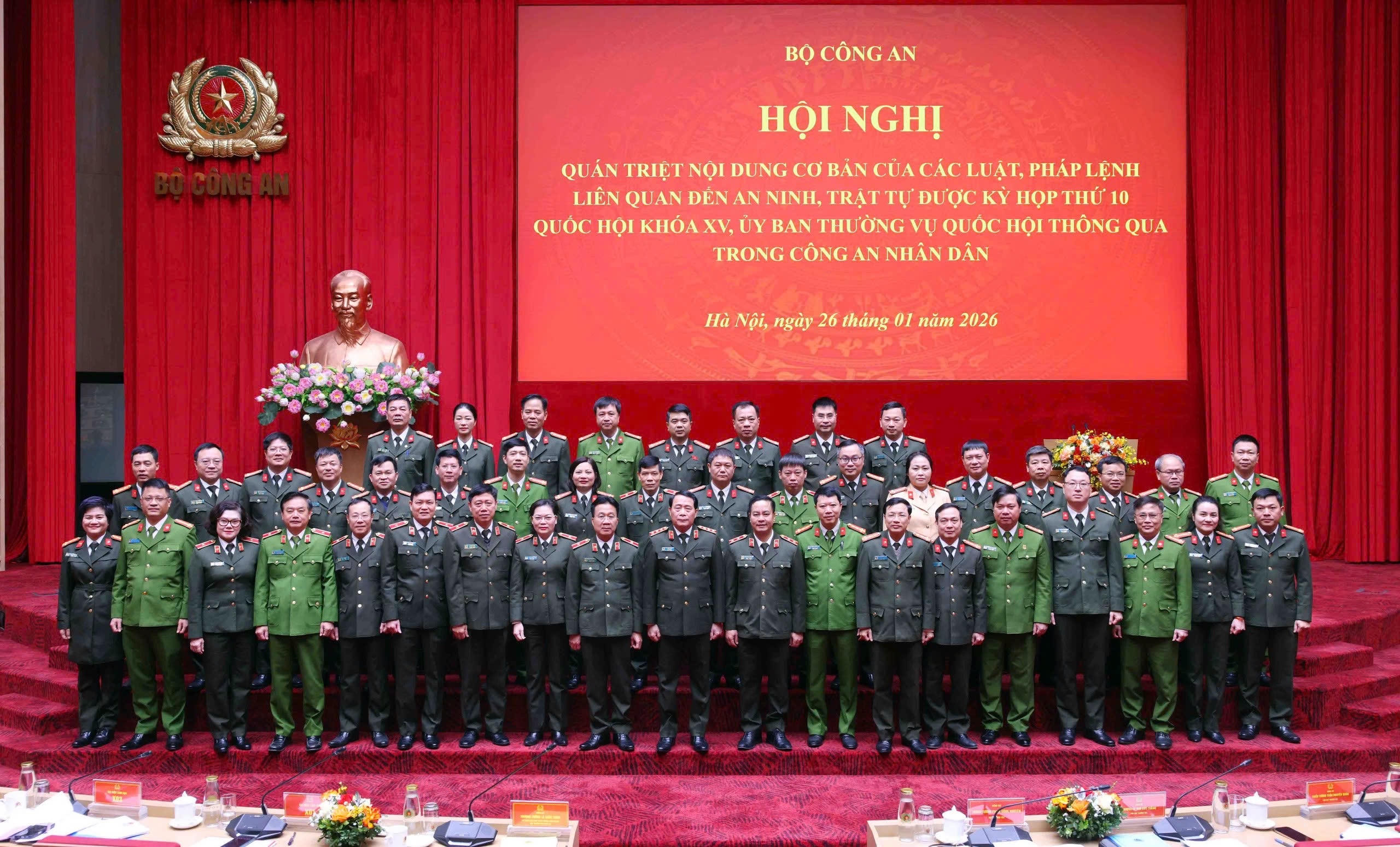Ngày 26/1, Bộ Công an đã tổ chức Hội nghị quán triệt nội dung cơ bản của các luật, pháp lệnh liên quan đến an ninh, trật tự được Kỳ họp thứ 10, Quốc hội khóa XV, Ủy ban Thường vụ Quốc hội thông qua trong Công an nhân dân.