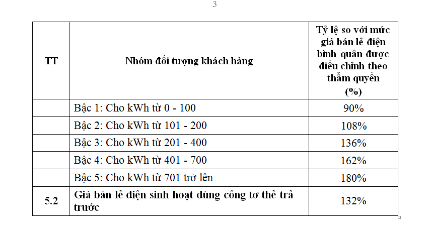 Giá bán lẻ điện cho nhóm khách hàng sử dụng điện sinh hoạt gồm 5 bậc có mức giá tăng dần nhằm khuyến khích sử dụng điện tiết kiệm, hiệu quả.