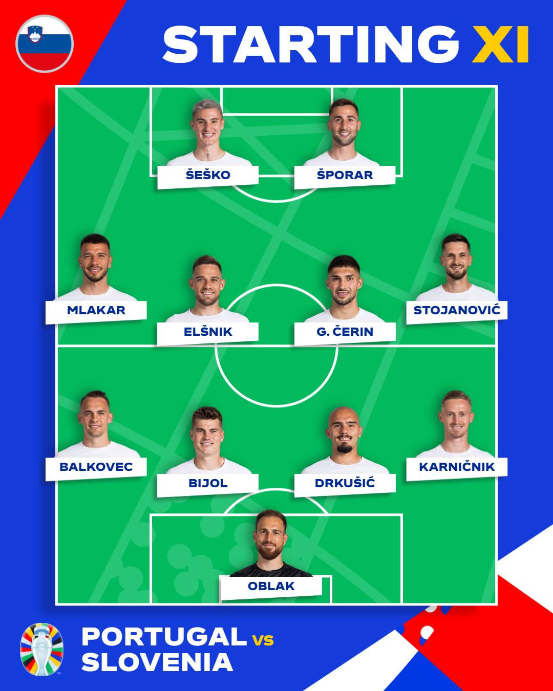 Với Slovenia, họ một lần nữa tin tưởng vào bộ khung Jan Oblak, Andraz Sporar và niềm hy vọng lớn Benjamin Sesko. Sự thay đổi duy nhất của HLV Matjaz Kek có thể là việc Jure Balkovec thế chỗ Erik Janza bị treo giò ở vị trí hậu vệ trái.