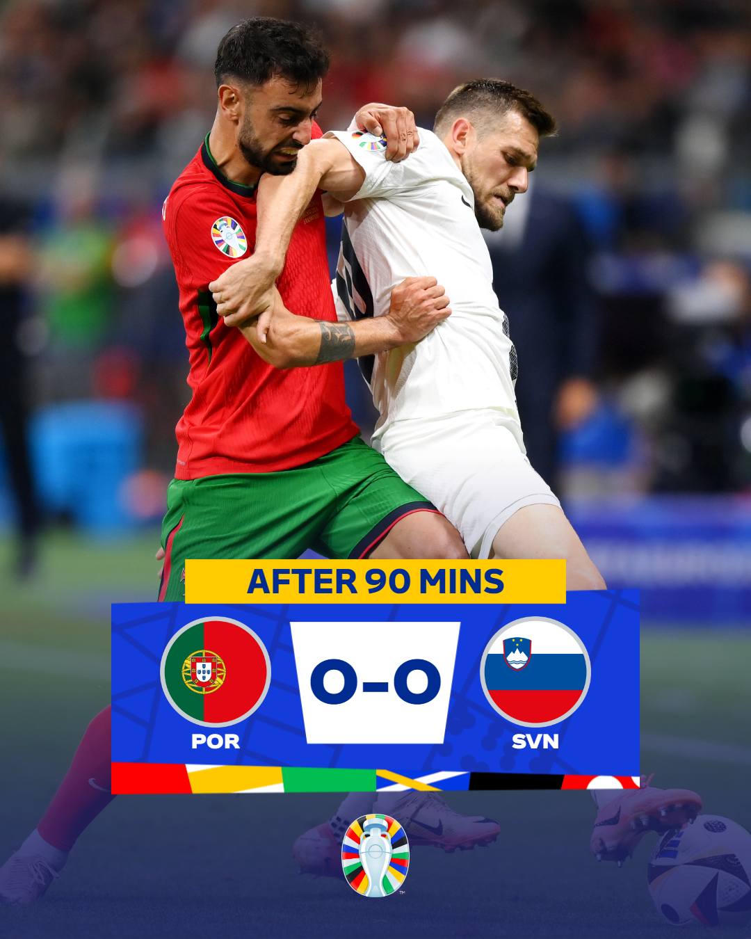 Bồ Đào Nha vẫn đang miệt mài tấn công nhằm tìm kiếm bàn thắng kết liễu Slovenia trong 90 phút. Tuy nhiên, đội bóng áo trắng đang chơi đầy kiên cường.