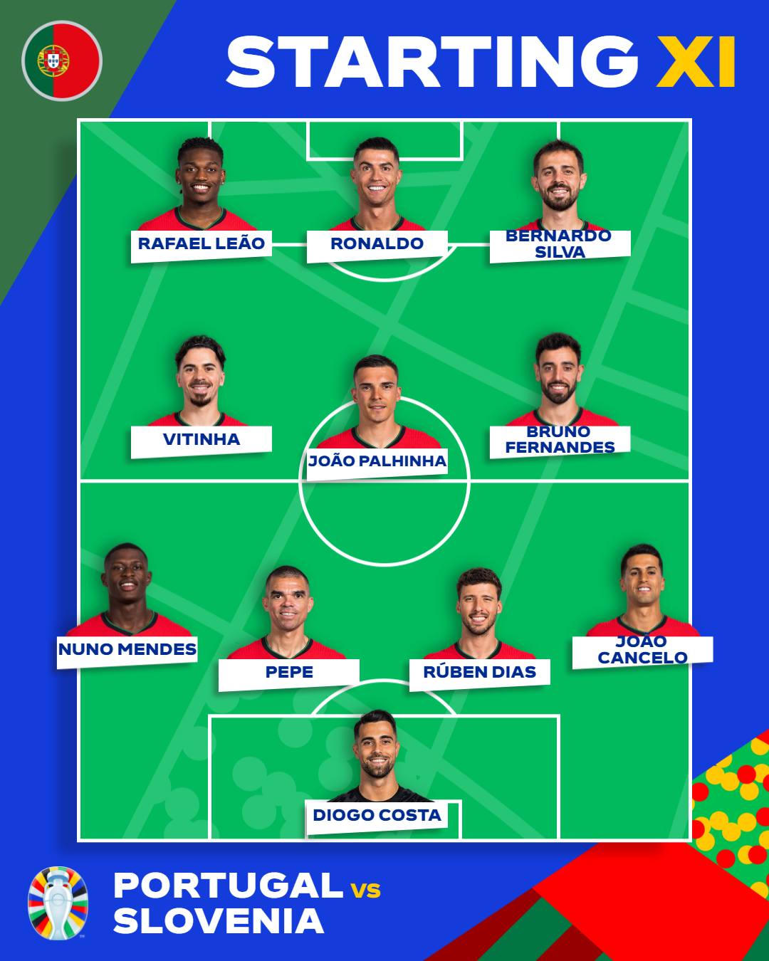 HLV Roberto Martinez có đội hình chủ chốt cho trận đấu này, trong đó có Bernardo Silva, Joao Cancelo và Vitinha, Joao Palhinha, thủ môn Diogo Costa và đội trưởng Cristiano Ronaldo được giữ lại trong trận gặp Georgia.