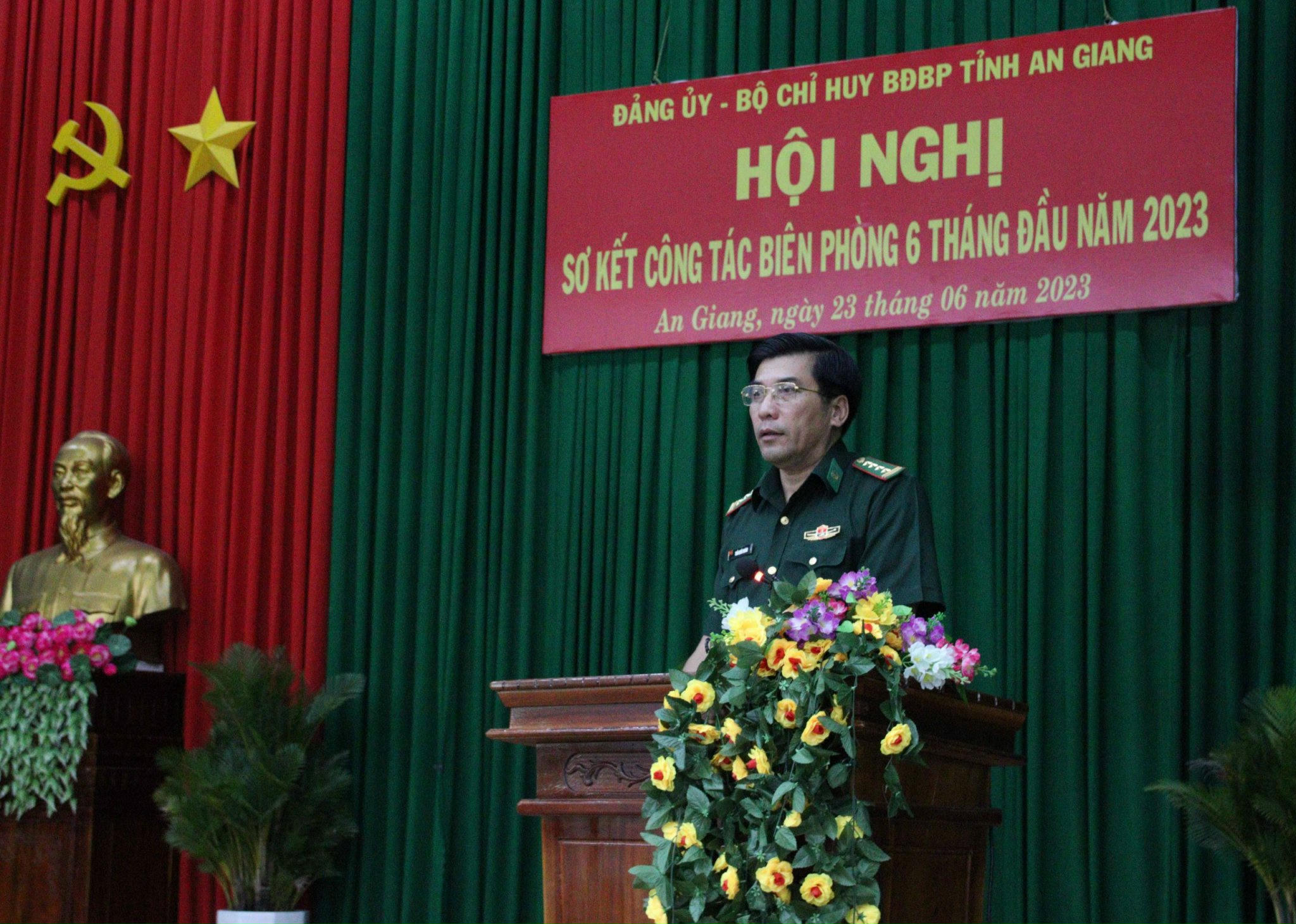 Đại tá Trần Quốc Khánh, Phó Bí thư Đảng ủy, Chỉ huy trưởng BĐBP tỉnh An Giang đề nghị, toàn đơn vị tiếp tục đẩy mạnh phong trào thi đua xây dựng “Chi bộ cơ sở bốn tốt”, “Đảng bộ cơ sở bốn tốt”; sơ kết, đánh giá giữa nhiệm kỳ thực hiện Nghị quyết Đại hội đảng các cấp trong Đảng bộ BĐBP tỉnh nhiệm kỳ 2020 - 2025; tổ chức Hội nghị kiểm điểm của Ban Thường vụ, Hội nghị Đảng ủy phiên cuối năm 2023...