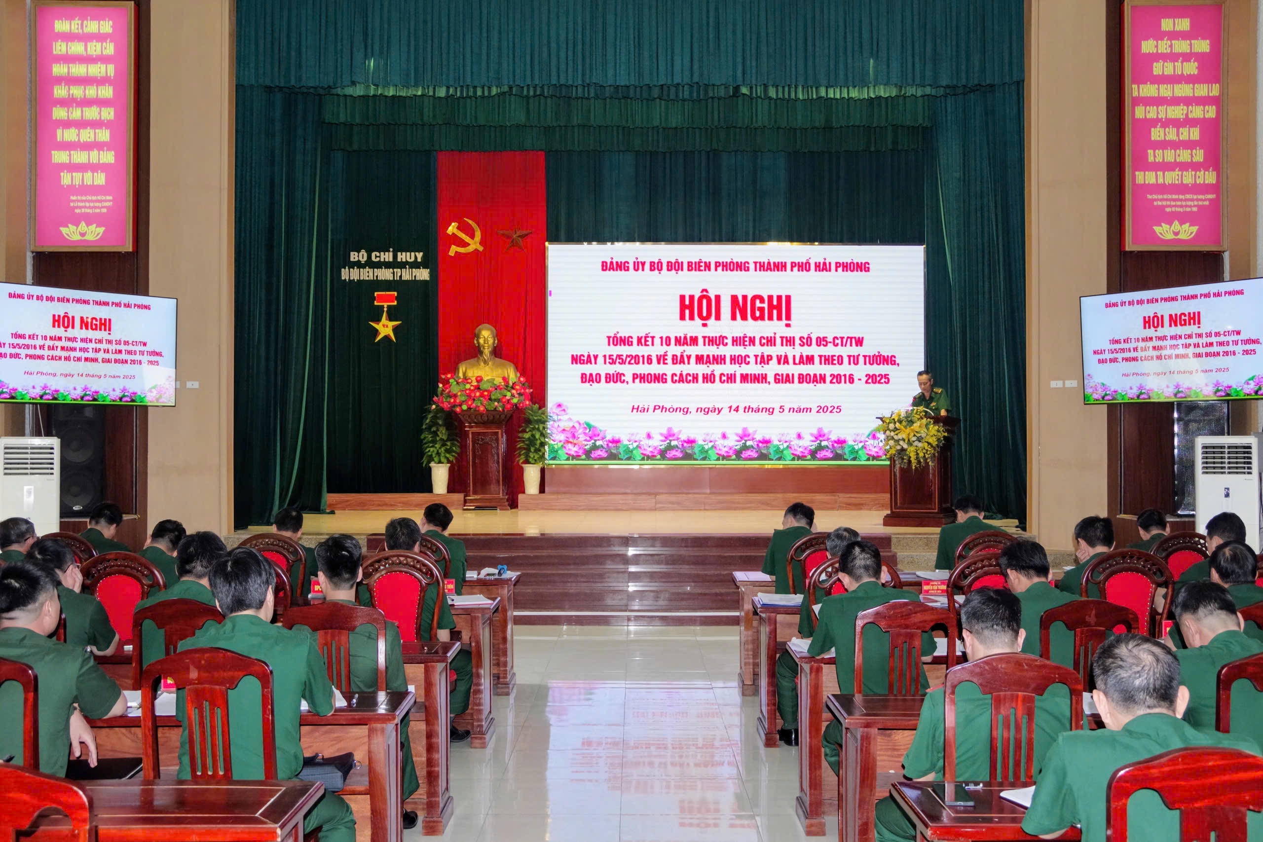 (PLVN) - Ngày 14/5, Bộ Chỉ huy Bộ đội Biên phòng (BĐBP) Hải Phòng tổ chức tổng kết 10 năm thực hiện Chỉ thị số 05-CT/TW ngày 15/5/2016 của Bộ Chính trị về đẩy mạnh học tập và làm theo tư tưởng, đạo đức, phong cách Hồ Chí Minh, giai đoạn 2016 – 2025.