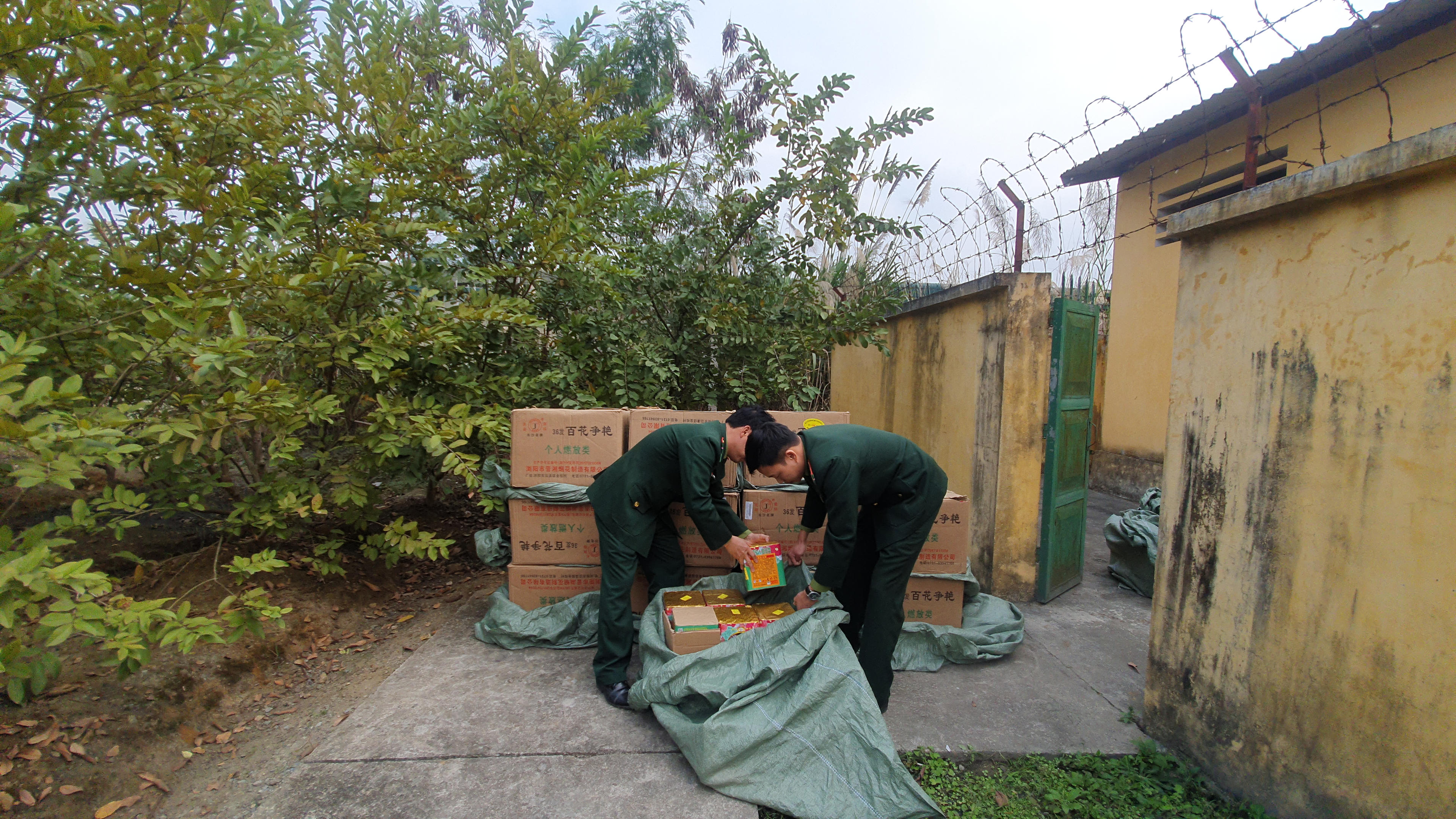 Tang vật thu giữ tại hiện trường gồm 29 bao tải bên trong mỗi bao đều chứa một thùng cát thông có 12 hộp pháo hoa nổ, mỗi hộp có trọng lượng là 2 kg, tổng trọng lượng của 29 bao bên trong có chứa pháo (do Trung Quốc sản xuất) mà lực lượng biên phòng bắt giữ có trọng lượng 696 kg.