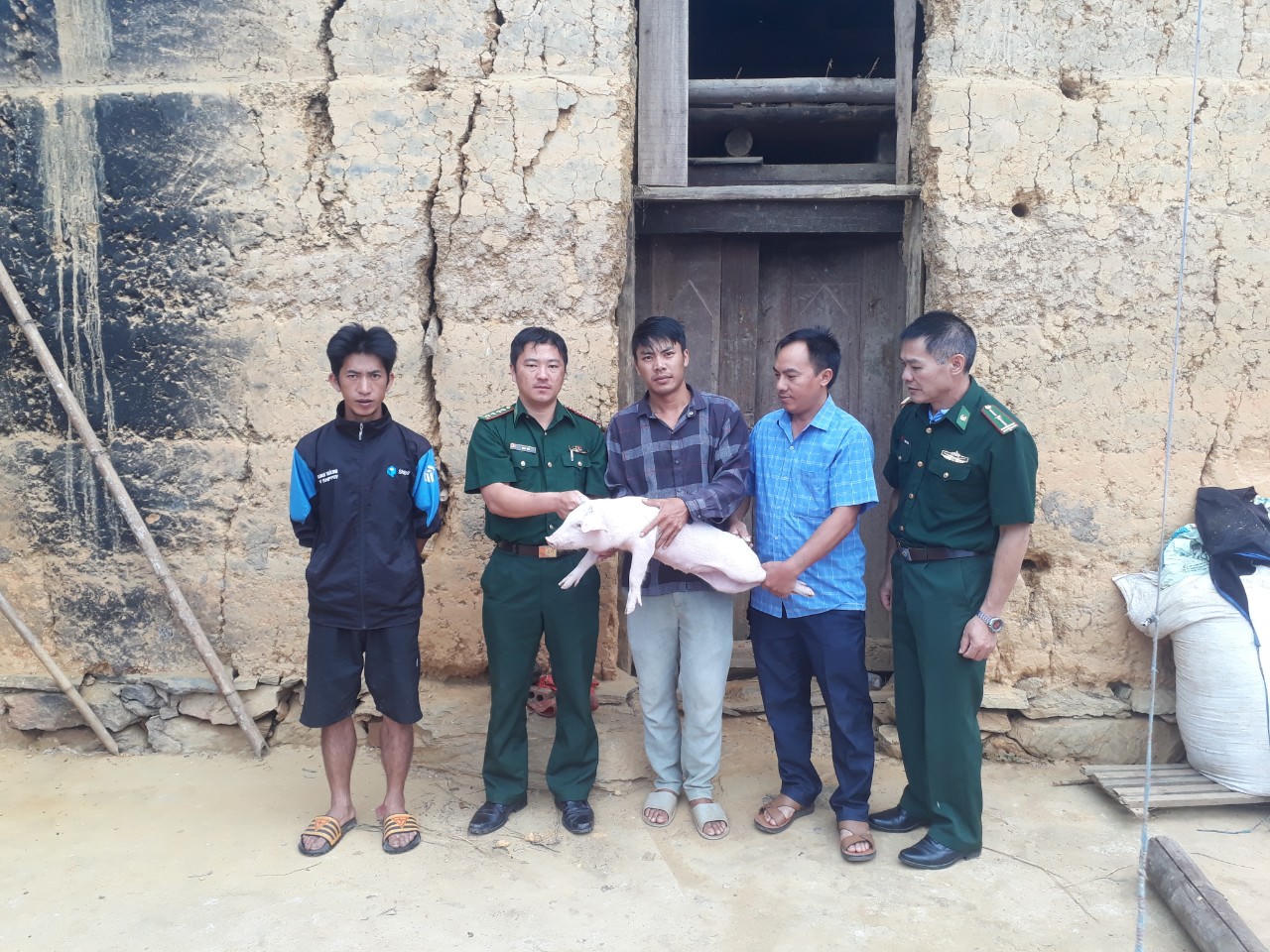 Đồn Biên phòng Pha Long trao lợn giống cho bà con. (Ảnh: Lam Hạnh) |