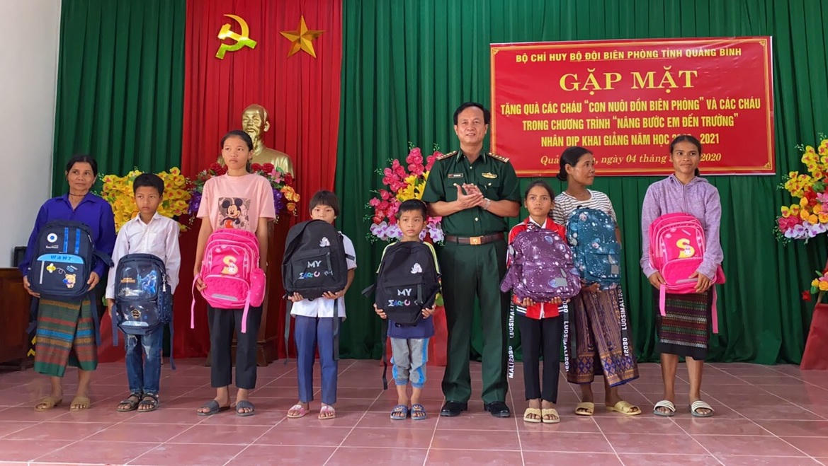 Nhân dịp bắt đầu năm học mới 2020-2021, hôm nay, 4/9, lãnh đạo Bộ Chỉ huy Bộ đội Biên phòng tỉnh Quảng Bình đã tổ chức gặp mặt, trao tặng 94 suất quà cho các cháu hiện đang là con nuôi, học sinh được lực lượng biên phòng nhận đỡ đầu. Mỗi suất quà trao tặng cho các em có trị giá 400 nghìn đồng.