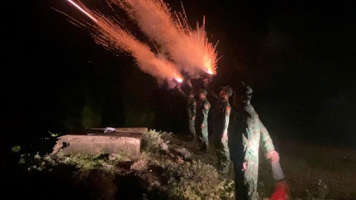 Chiến sĩ Biên phòng tỉnh Quảng Nam bắn pháo sáng cảnh báo bão. (Ảnh: Công Huy) |