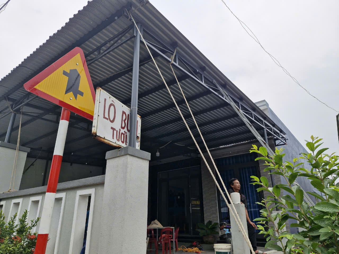 Nhiều người dân tự chằng chống nhà cửa. (Ảnh: Công Huy). |