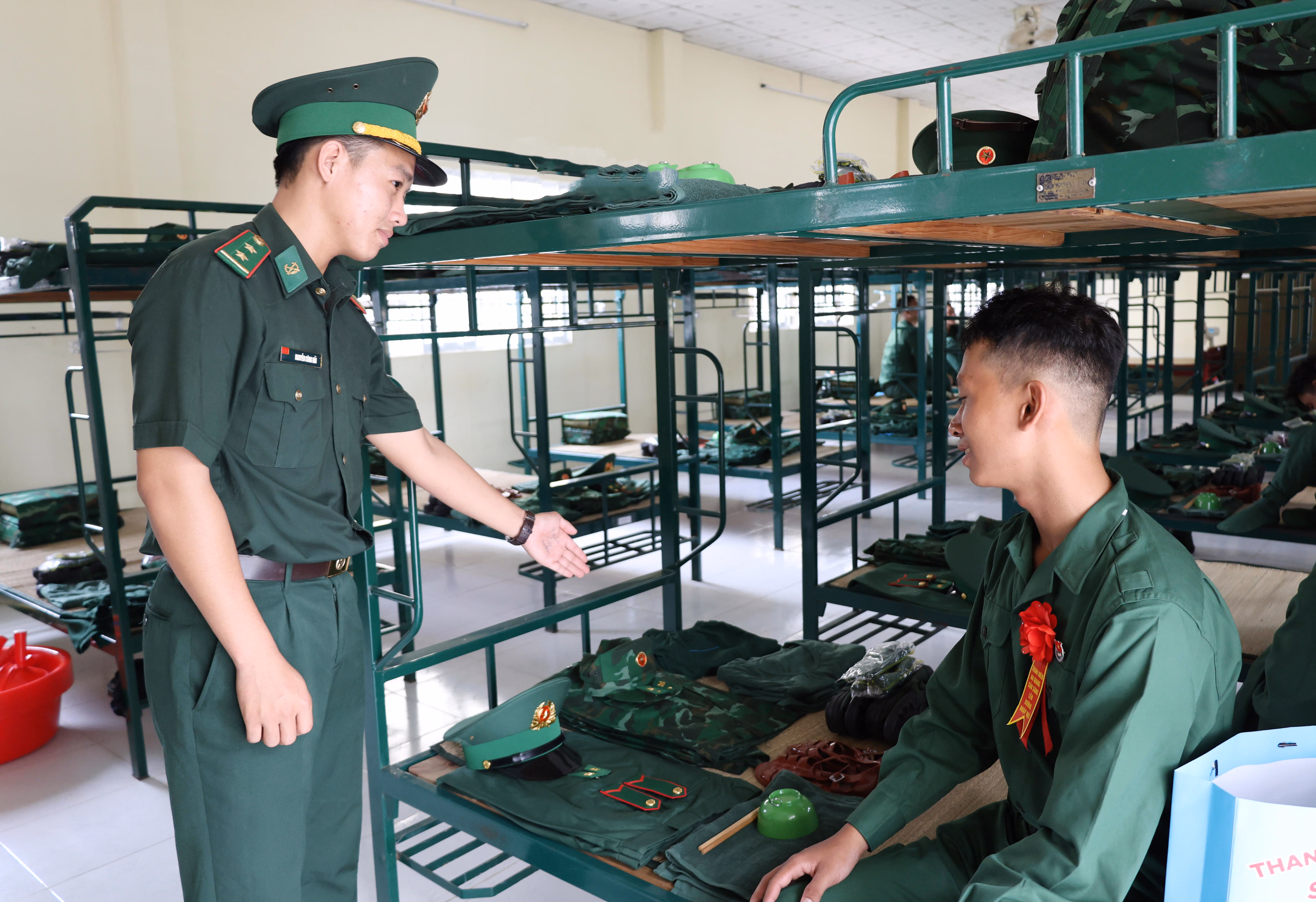 Năm nay, các chiến sĩ mới nhập ngũ vào lực lượng Bộ đội Biên phòng tỉnh được tuyển chọn từ 25 xã, phường trên địa bàn tỉnh An Giang. Ngay sau khi về đơn vị, các chiến sĩ được tiếp nhận theo đúng quy định; tiến hành kiểm tra hồ sơ, cấp phát quân tư trang, sắp xếp biên chế về các đầu mối của đơn vị. Công tác ổn định nơi ăn, ở, sinh hoạt và học tập được triển khai khẩn trương, nền nếp, bảo đảm nhanh chóng đưa bộ đội vào chế độ huấn luyện. Nhờ sự chuẩn bị chu đáo, việc giao, nhận quân diễn ra chặt chẽ, an toàn, đúng quy định.