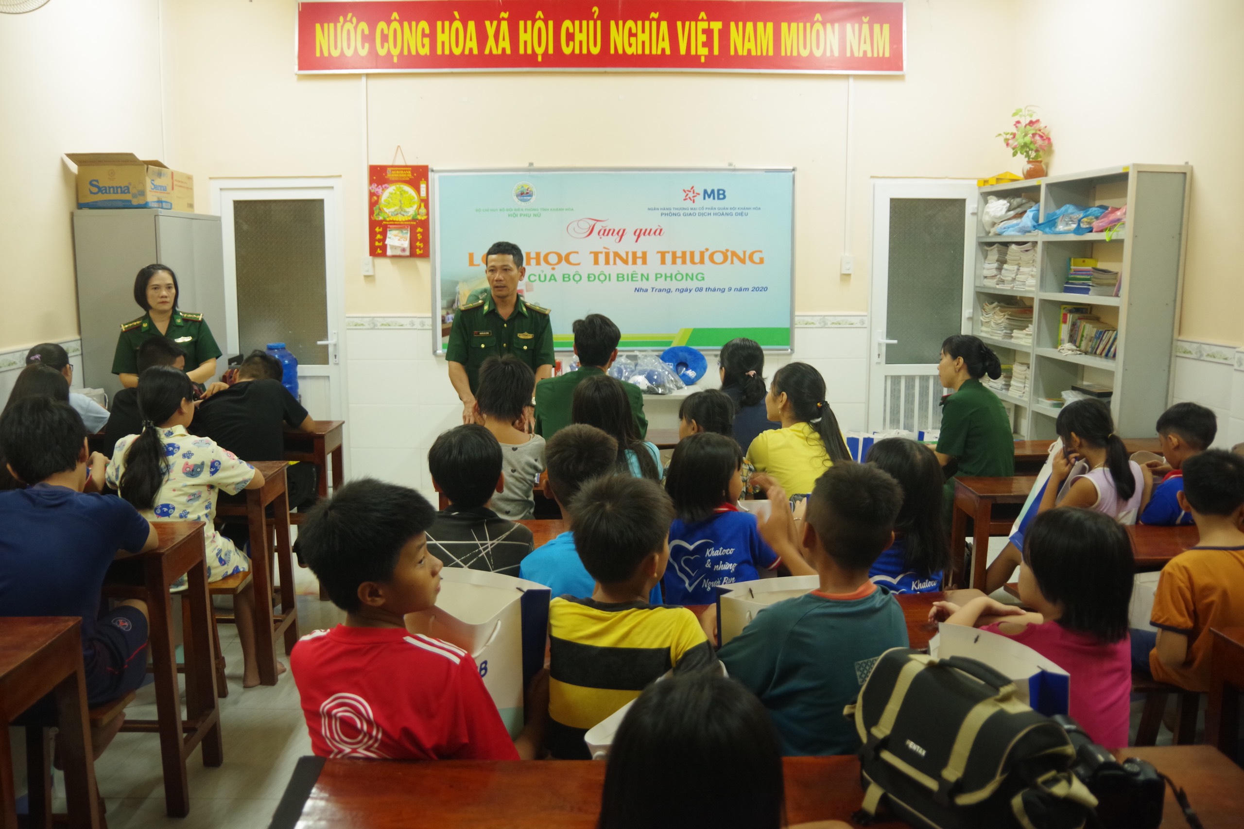 Dịp này, Hội Liên hiệp phụ nữ Bộ đội Biên phòng tỉnh Khánh Hòa đã trao tặng 50 phần quà gồm sách, vở, bút…; Phòng giao dịch Hoàng Diệu trao tặng 50 mũ bảo hiểm cho các cháu học sinh. Những phần quà này như góp thêm một phần động lực giúp các cháu vượt qua khó khăn, chăm ngoan học giỏi vươn lên trong cuộc sống.