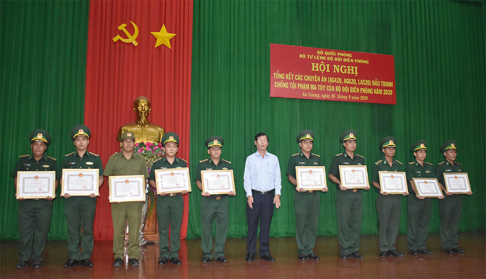 (PLVN) - Ngày 26/9, tại An Giang, Bộ Tư lệnh Bộ đội Biên phòng (BĐBP) tổ chức Hội nghị Tổng kết các chuyên án: AG420, AG620, LA520, đấu tranh chống tội phạm ma túy của BĐBP năm 2020.