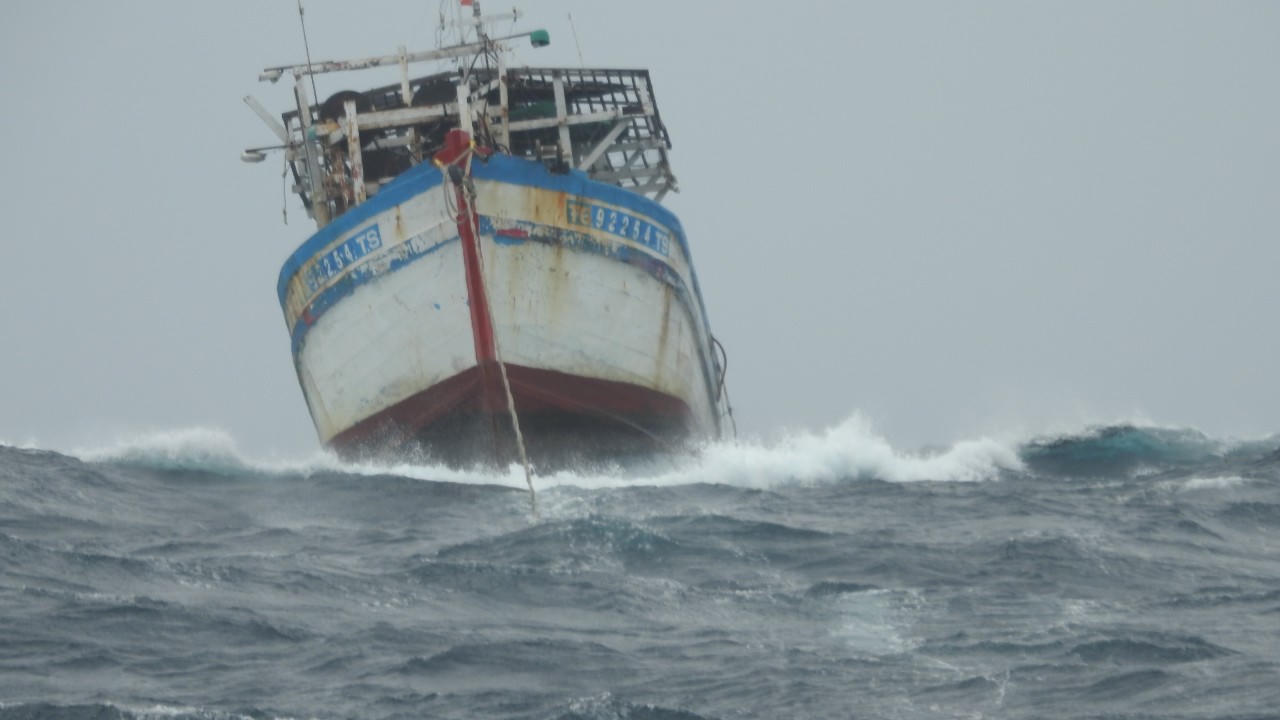 (PLVN) - Sáng 5/12, Tàu 740, Hải đoàn 129, Quân cảng Sài Gòn đã kéo thành công tàu cá TG 92254 TS và cứu 6 ngư dân bị nạn trên biển về neo đậu tại khu vực Nhà giàn DKI/12 an toàn.