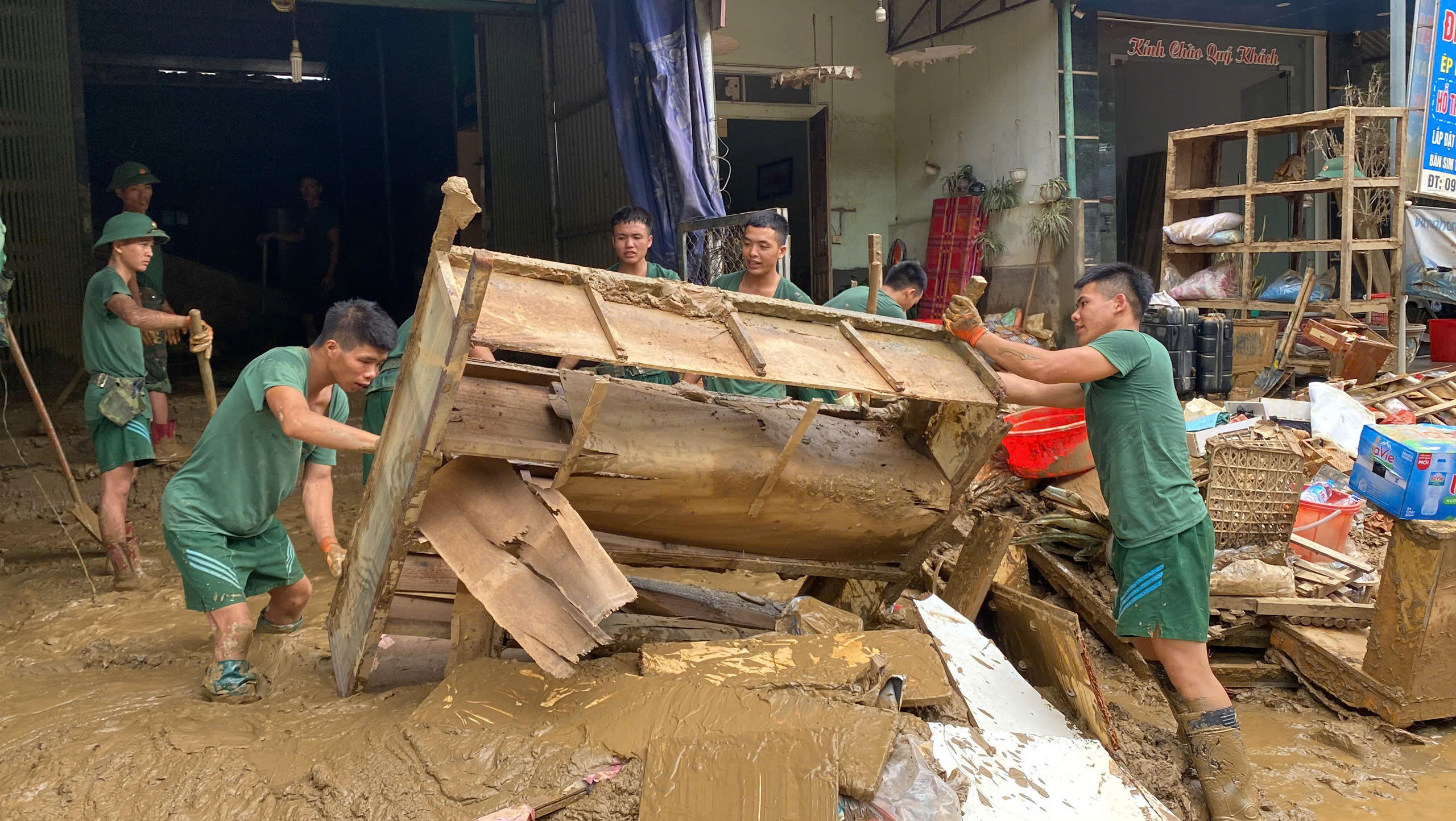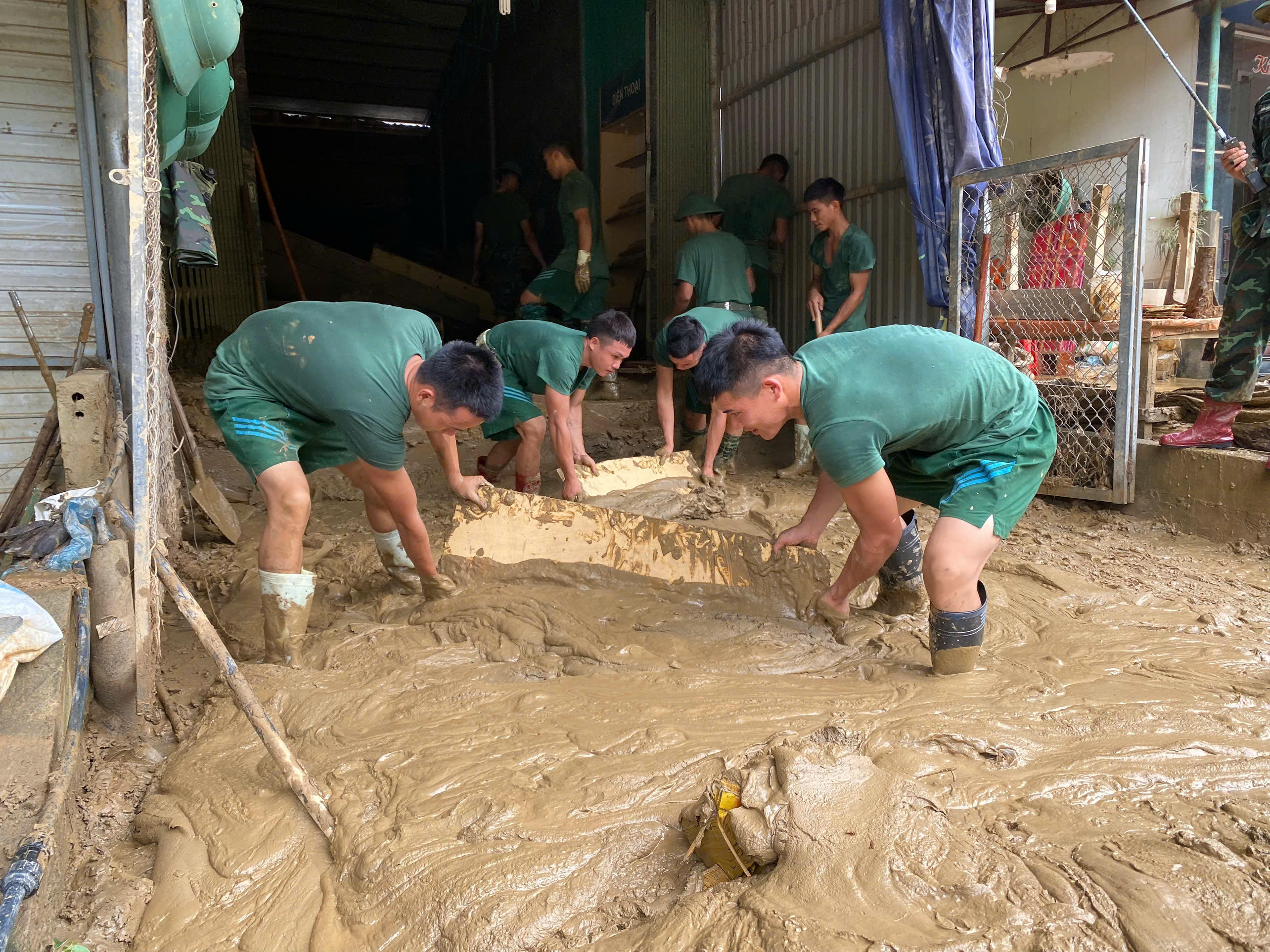 (PLVN) - Cán bộ, chiến sĩ Sư đoàn 316, Quân khu 2 đã có mặt từ sớm và luôn sát cánh giúp đỡ, chia sẻ những nỗi đau, mất mát của bà con.