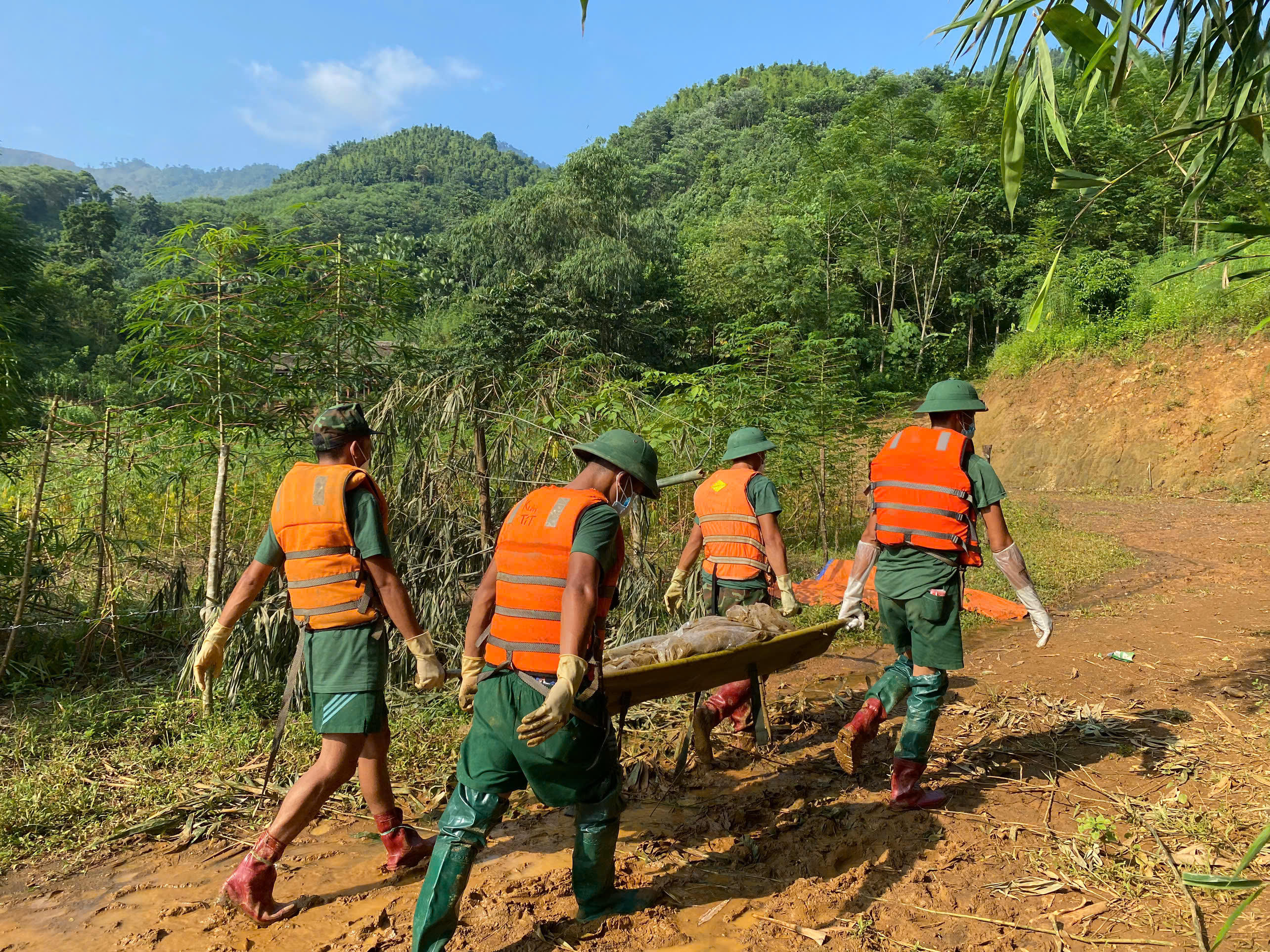 Sáng 18/9, cán bộ, chiến sĩ Sư đoàn 316 đã tìm thấy một thi thể, đưa về bàn giao cho gia đình lo hậu sự. |